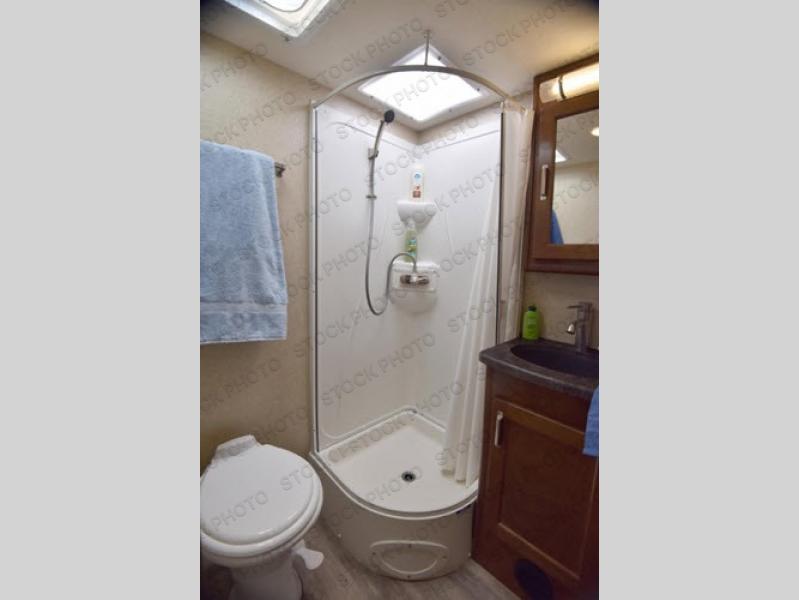 Head to your local state park in this comfortable travel trailer that can sleep four people each night. You will find plenty of storage space, including locking pull-out storage drawers under the U-shaped dinette. The chef of the family will appreciate the three burner range to prepare all the meals, and there is a 7 cu. ft. Dometic 2-way double door refrigerator to store the leftovers. You and your spouse will get a great night's rest on the queen bed up front, and there is a privacy curtain to enjoy your own space. And don't forget to add the optional 28" TV in the main living area for movie night!