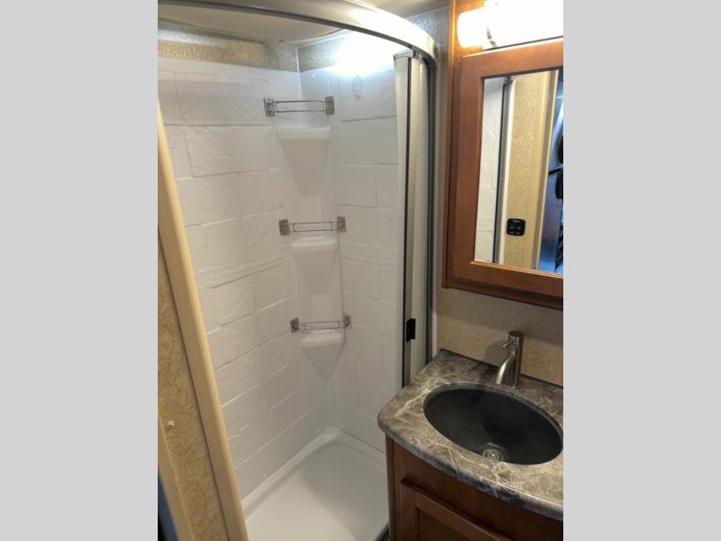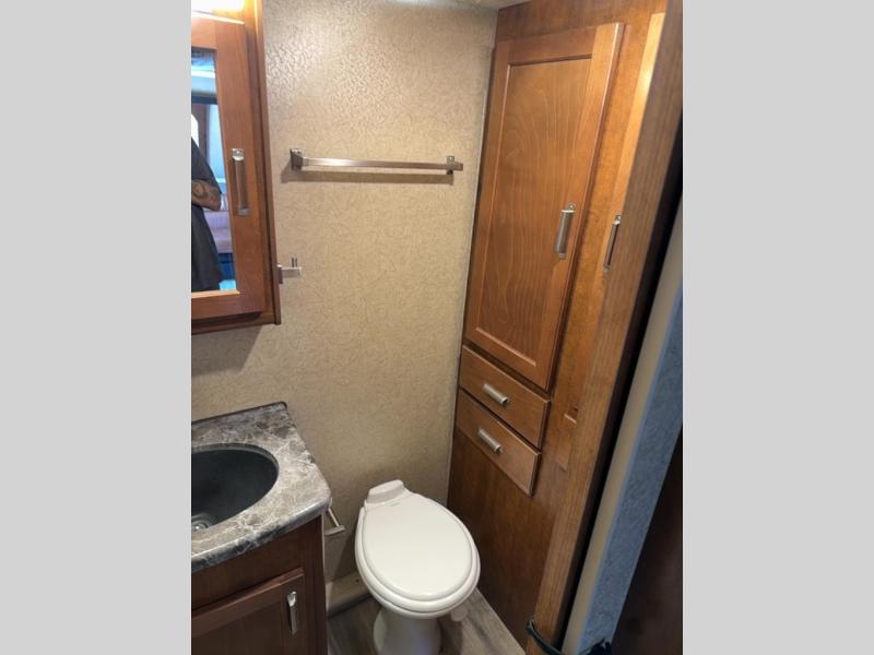 You will enjoy every minute spent in this spacious travel trailer. Once you arrive at your destination, slide out the U-shaped dinette as the chef of the family prepares lunch on the three burner range. The folding galley extension will provide more counter space, along with the sink cover. Within the full rear bath you'll find a shower skylight for more standing room and a wardrobe to hang your clothes for your convenience. The queen bed up front includes a privacy curtain in case you have guests over, and you can choose to add the optional 32" TV in the main living area that is in great view from the dinette and the bed!
