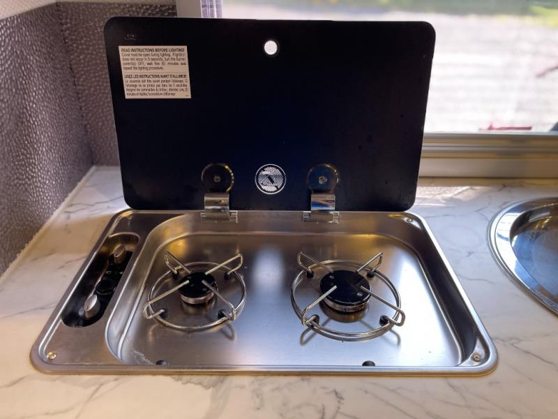 It will be easy to enjoy camping trips in this travel trailer that can sleep four people each night. Once you arrive at your destination, prepare a quick lunch on the two burner range, or you can choose the optional outdoor kitchen to give you more time in the Great Outdoors. The full bath includes an adjustable slide bar shower head assembly and a medicine cabinet with a mirror door for your convenience. The deluxe queen innerspring mattress will provide a great night's rest and you'll appreciate storage on either side of the bed for your clothes. The kids or your overnight guests can sleep on the rear U-shaped dinette when it's not being used for dining or game night!