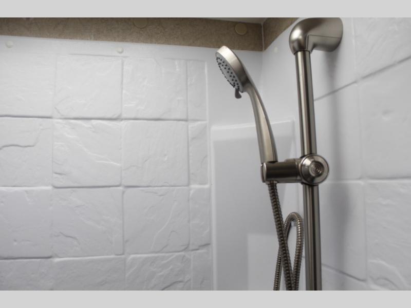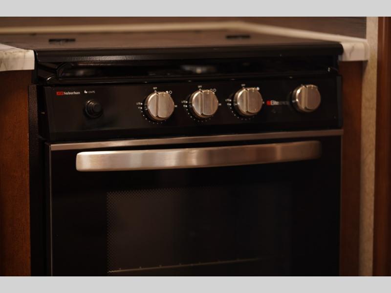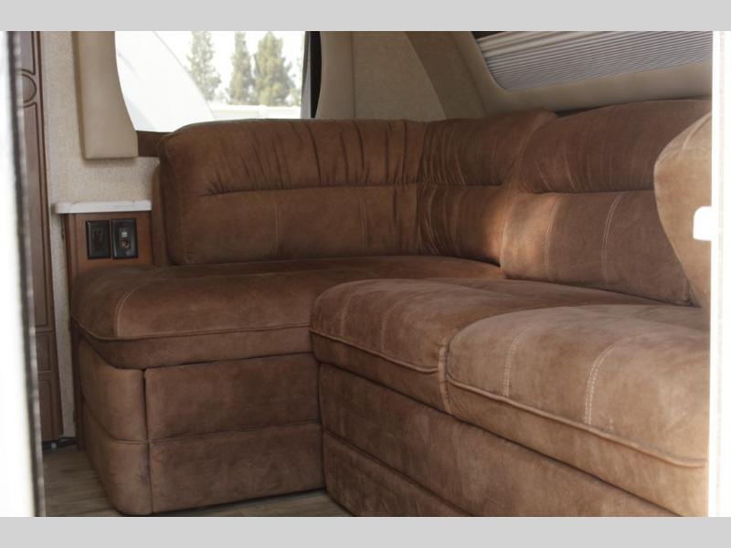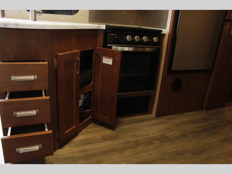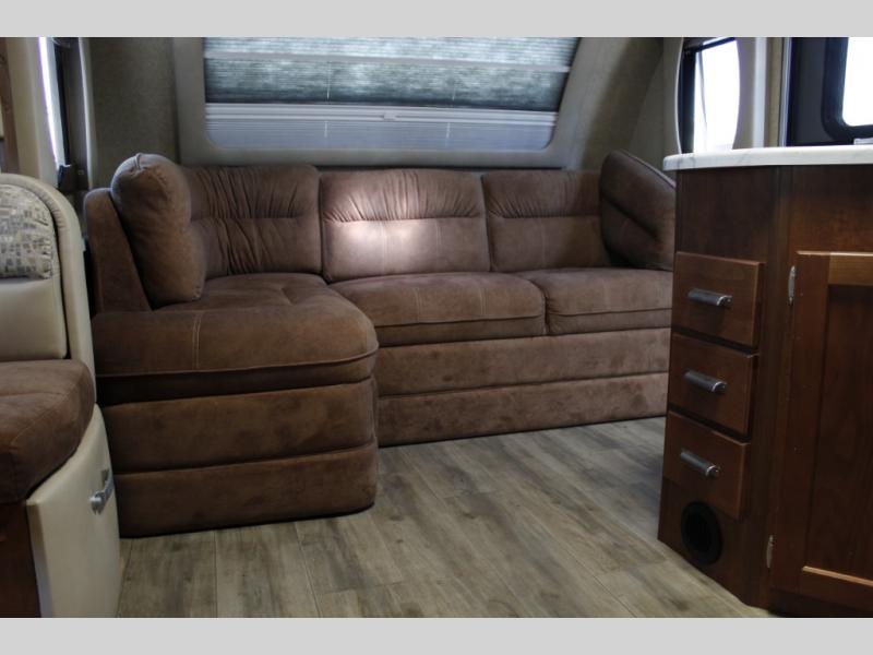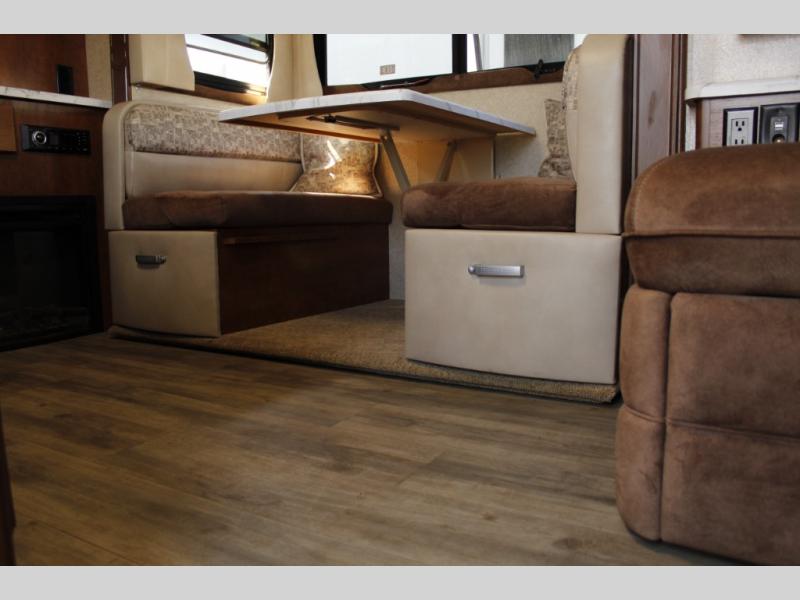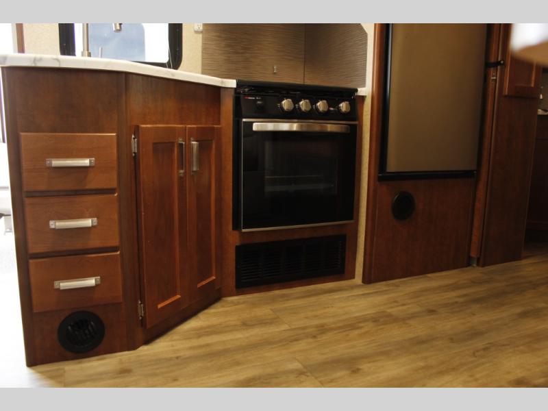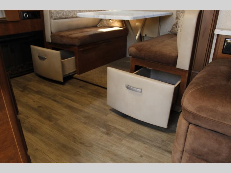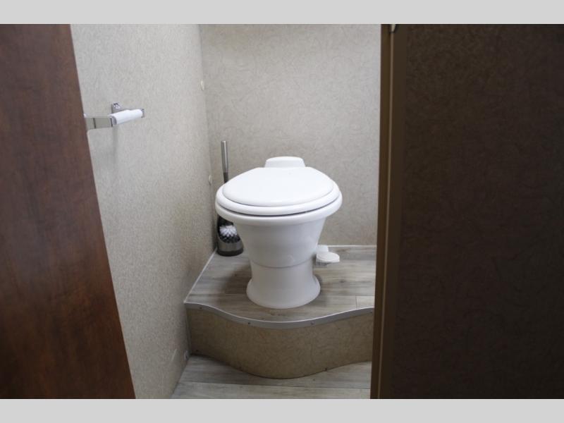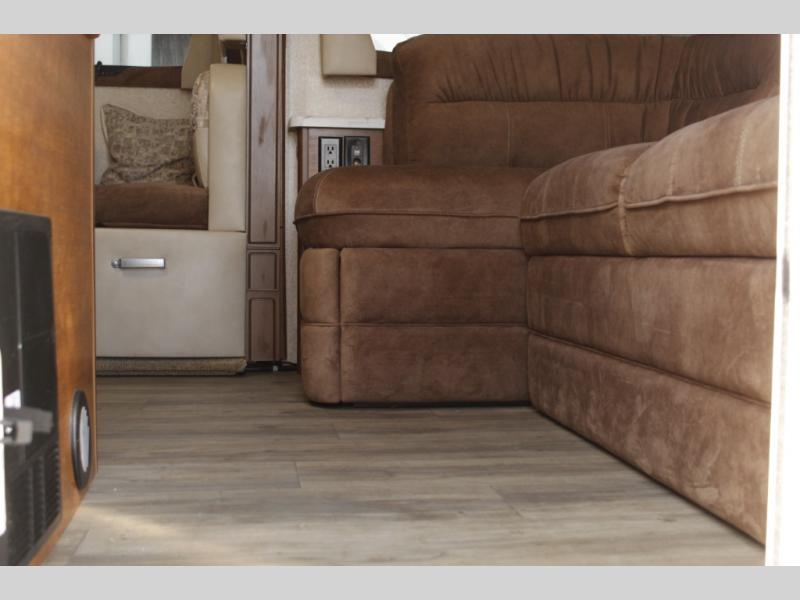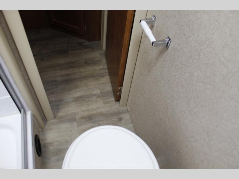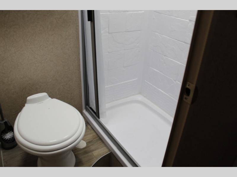 You may not even realize you're away from home when you camp in this spacious travel trailer. From the front living area with a residential J-lounge sofa to the rear private bedroom with a deluxe king bed, it won't be hard to find comforts throughout. The mid-ship spacious bath will allow you to stay clean after hiking or biking, and you'll find plenty of storage space for all your gear. The booth dinette includes locking pull-out storage drawers for your valuables and this area will be perfect to enjoy meals together.