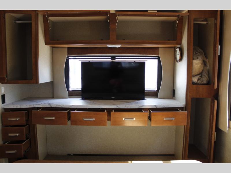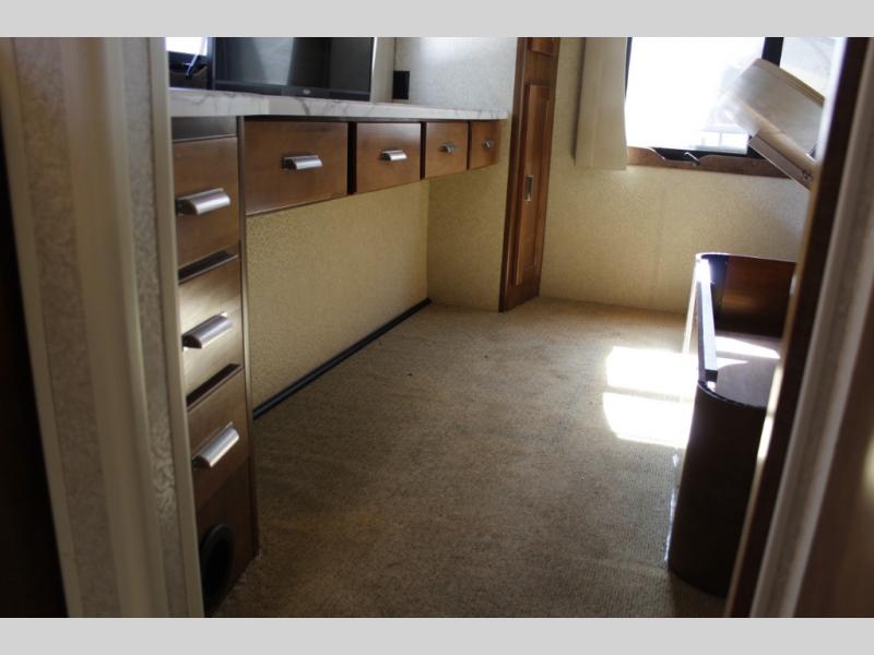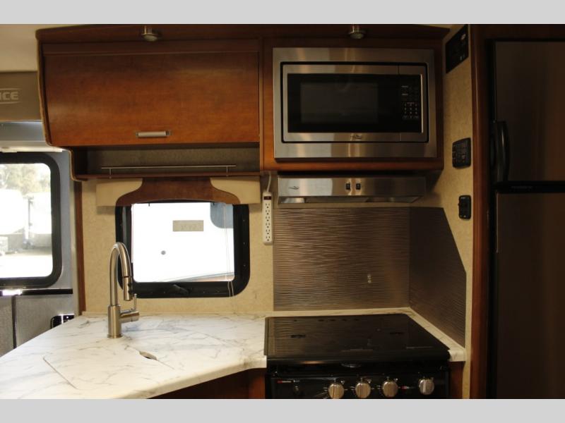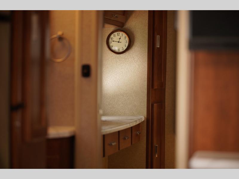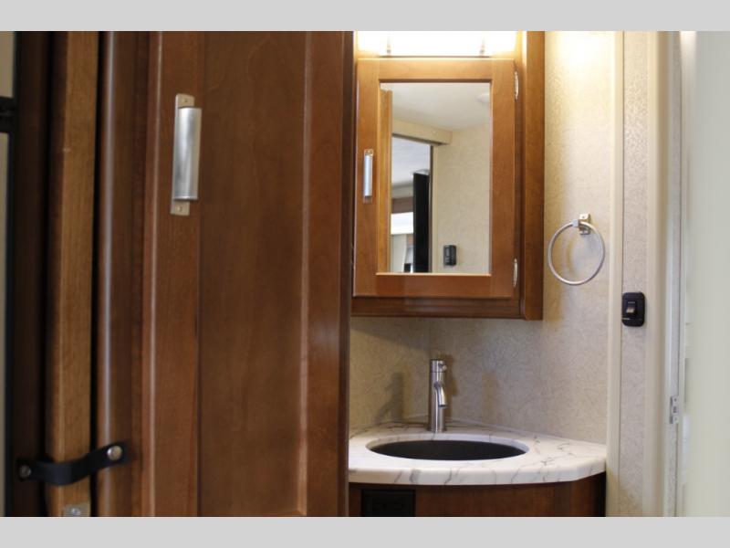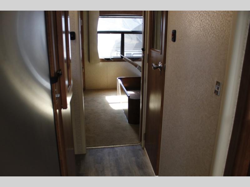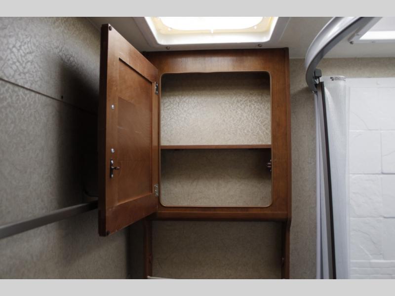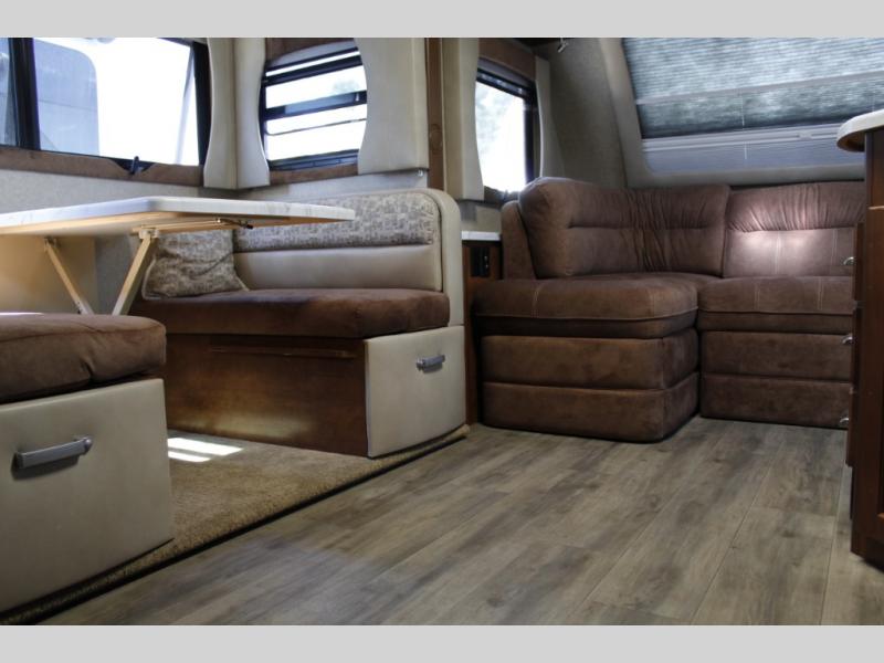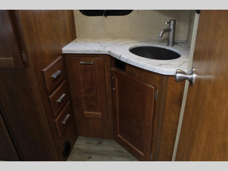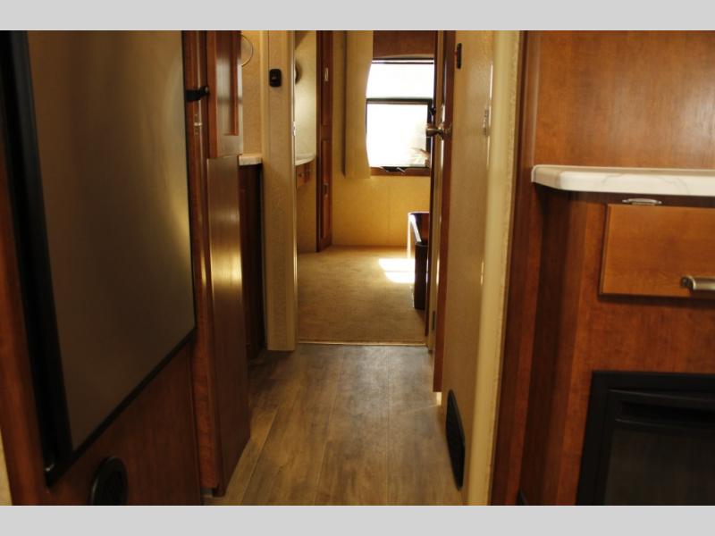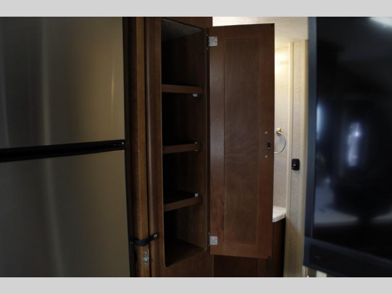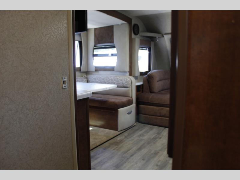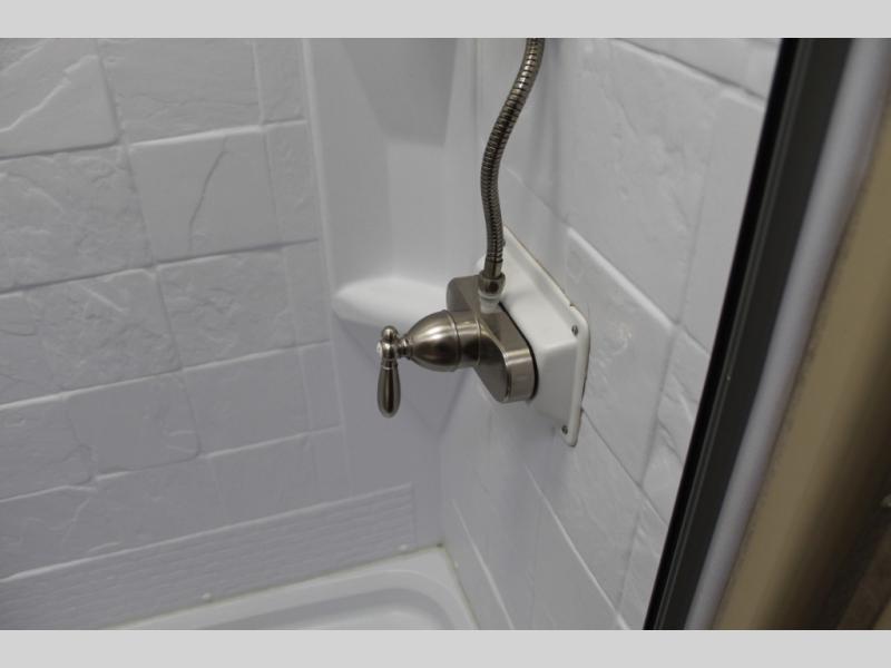 You may not even realize you're away from home when you camp in this spacious travel trailer. From the front living area with a residential J-lounge sofa to the rear private bedroom with a deluxe king bed, it won't be hard to find comforts throughout. The mid-ship spacious bath will allow you to stay clean after hiking or biking, and you'll find plenty of storage space for all your gear. The booth dinette includes locking pull-out storage drawers for your valuables and this area will be perfect to enjoy meals together.