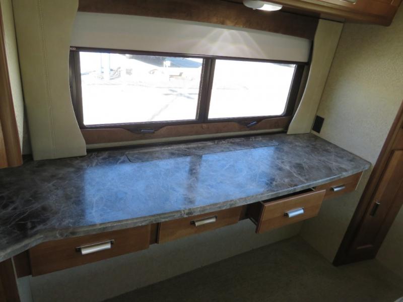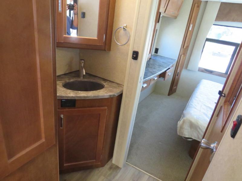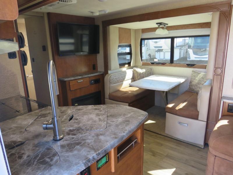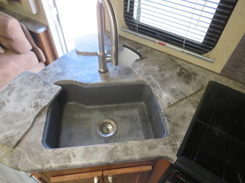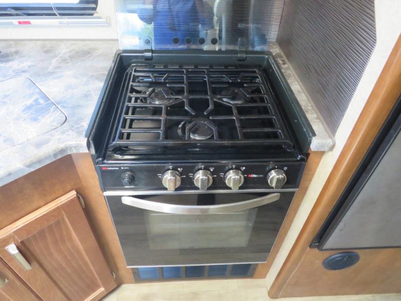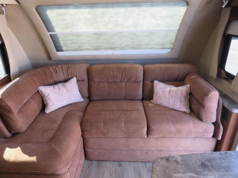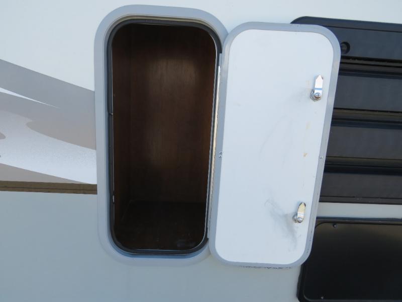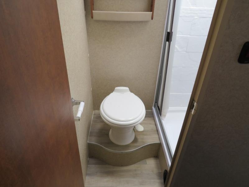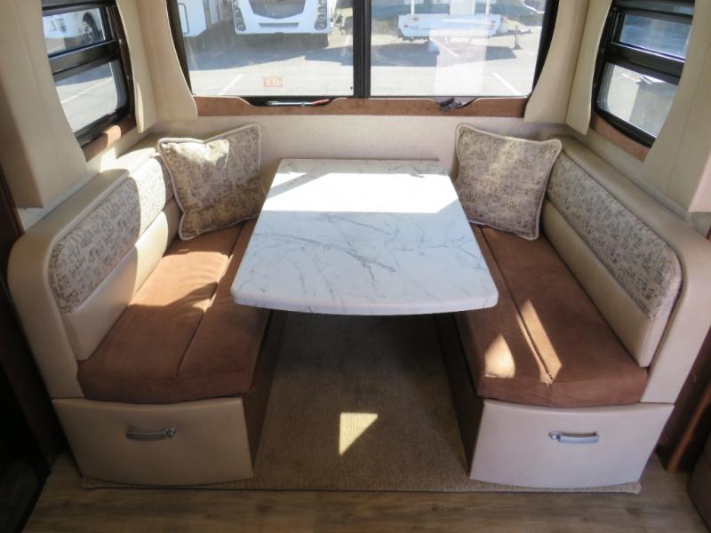 You may not even realize you're away from home when you camp in this spacious travel trailer. From the front living area with a residential J-lounge sofa to the rear private bedroom with a deluxe king bed, it won't be hard to find comforts throughout. The mid-ship spacious bath will allow you to stay clean after hiking or biking, and you'll find plenty of storage space for all your gear. The booth dinette includes locking pull-out storage drawers for your valuables and this area will be perfect to enjoy meals together.