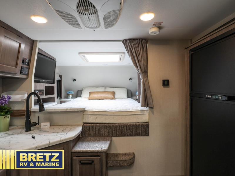 If you are looking for a winning design and maximum living space, then you need this Lance truck camper. The single slide booth dinette that has been included is what gives this camper its ample room for your favorite amenities. Like the queen-size pillow top mattress with a headboard, LED reading lights, a privacy curtain, and a large wardrobe in the cab area and the stainless steel three-burner range top and 6 cubic foot three-way refrigerator with stainless steel door panels in the kitchen.