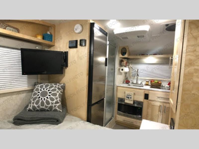 Are you ready for a quiet retreat in the woods or at a nearby campground? You will want a Liberty Outdoors Little Guy teardrop trailer! These models have a large pass-through storage area, aluminum-framed sidewalls and roof, plus a one-piece seamless fiberglass roof. Inside, you can choose between light Maple or dark Walnut hardwood cabinets, and the 13,500 BTU roof-mount Dometic air conditioner will keep you cool in the summer. The Rough Rider Package is ideal if you plan to use the Little Guy on rough terrain. You will also find that there are plenty of upgrades to choose from, such as Zamp solar power, a Furrion wireless observation system, and a Jack-It bike carrier.