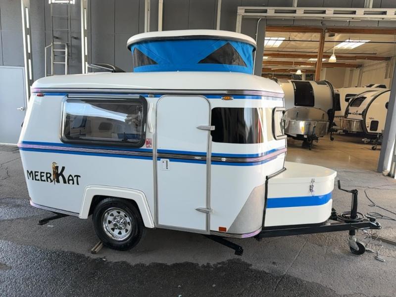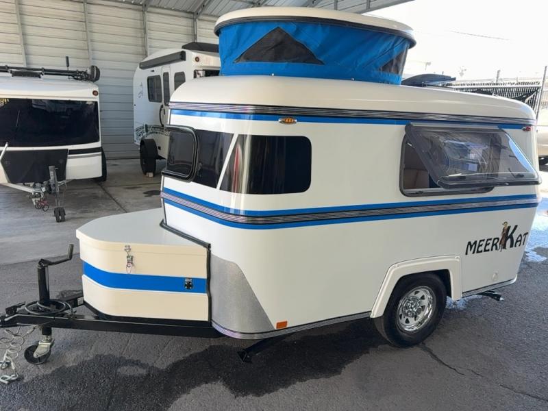 Bigger is not always better, and this little MeerKat will prove that to any interested camping couple that is looking to tow behind their everyday car. The MeerKat provides you a step up from tent camping where you can enjoy a dry place to sleep, eat, and store your things easily. And the included porta potty allows you to skip the public facilities in the middle of the night. The dinette table and wrap around seating can easily transform into a bed for a comfortable night's sleep. Three opening windows will allow you to enjoy fresh air circulating throughout both day and night. You will find under seating storage, plus several cabinets to tuck your things out of sight when not in use, and the front countertop provides a handy sink, plus a one burner camp stove is also available along with an icebox for your perishables. The MeerKat can easily be customized to suit your style of camping. You can add an optional awning, front storage box for more gear, a refrigerator, or induction cooktop, plus more. It's time to check this tiny camper out!