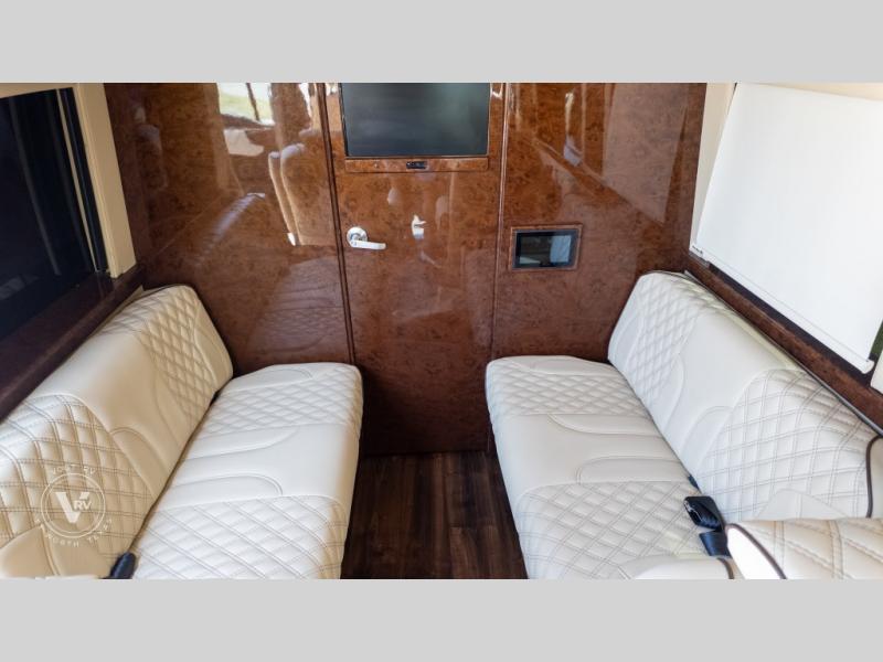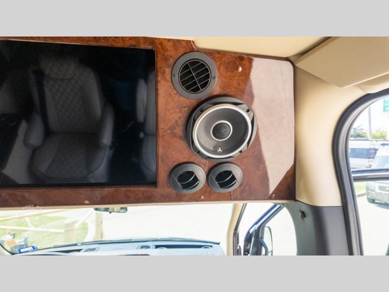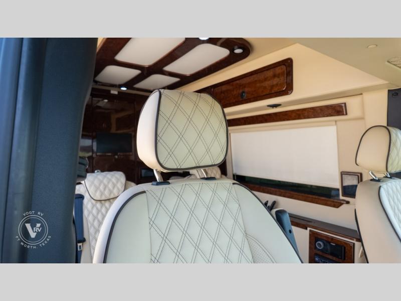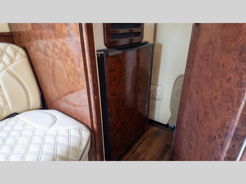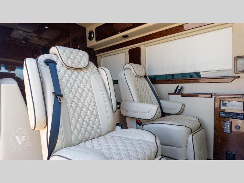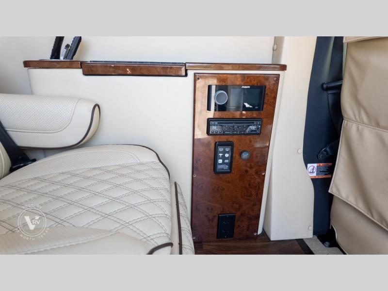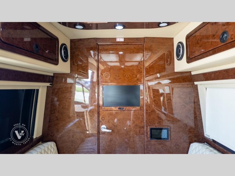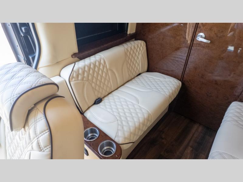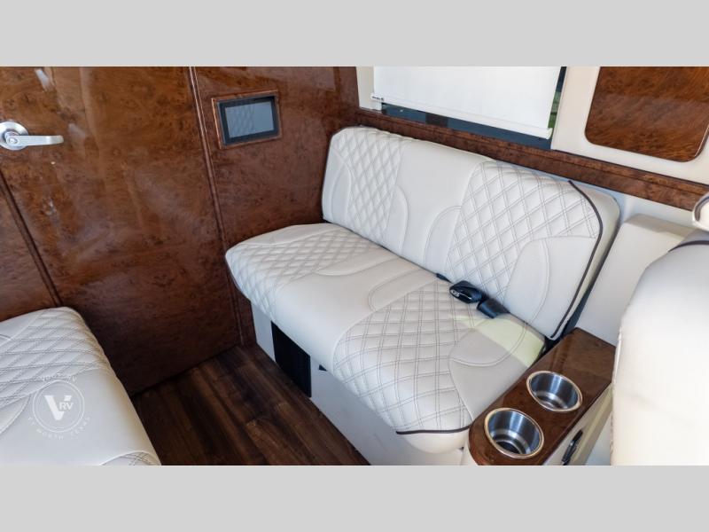 Exquisite Finishes: Throughout the van, you'll find custom-made, hand-rubbed wood cabinetry and trim, complemented by soft-touch automotive fabrics, mood lighting, and coordinated valances.