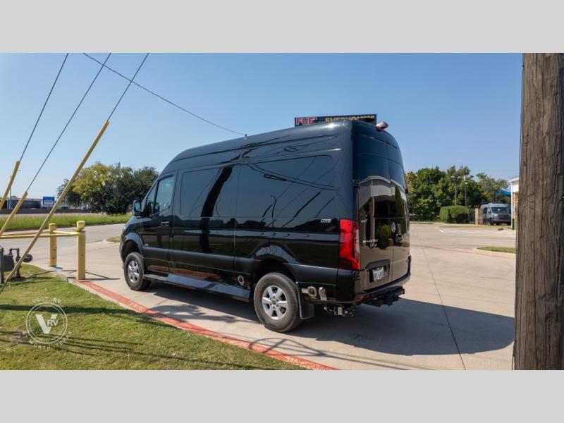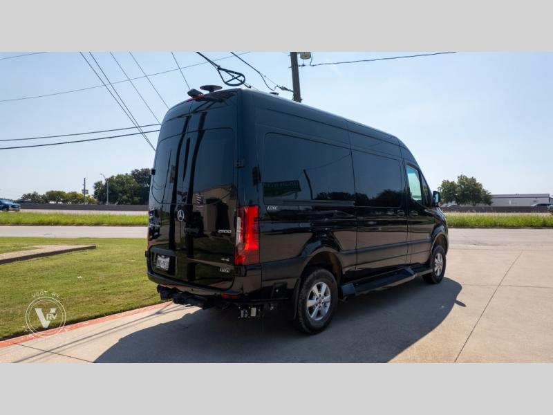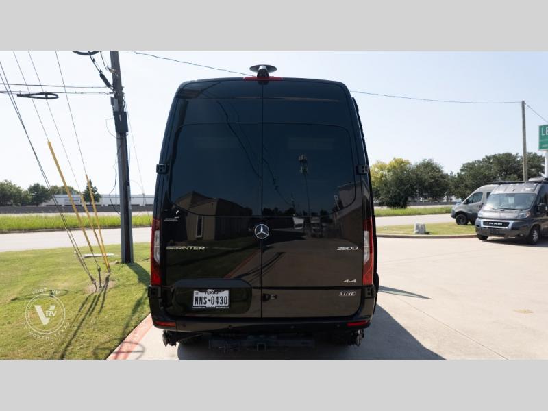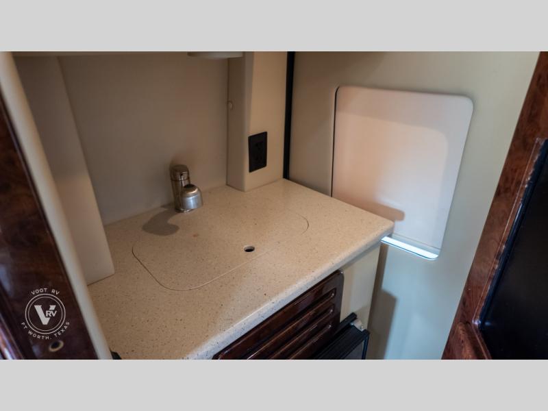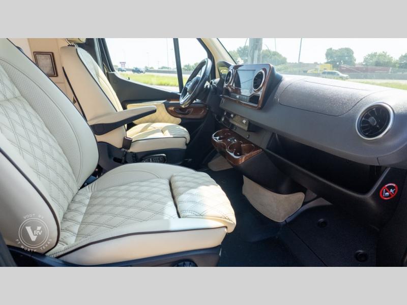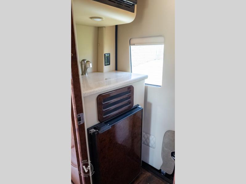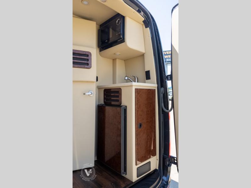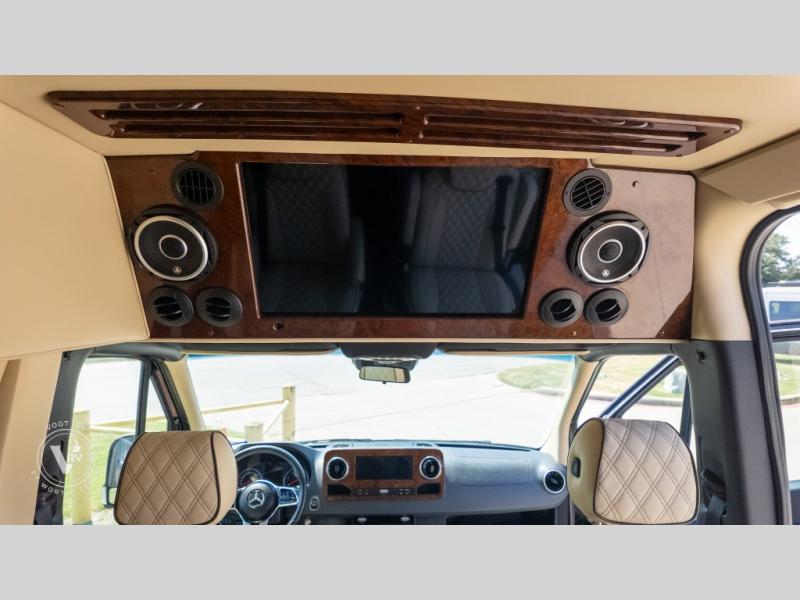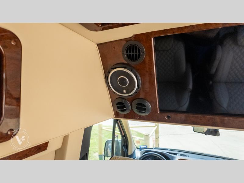 Exquisite Finishes: Throughout the van, you'll find custom-made, hand-rubbed wood cabinetry and trim, complemented by soft-touch automotive fabrics, mood lighting, and coordinated valances.