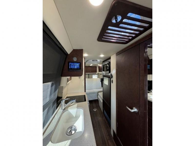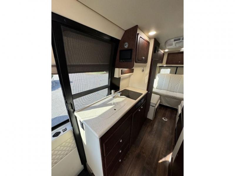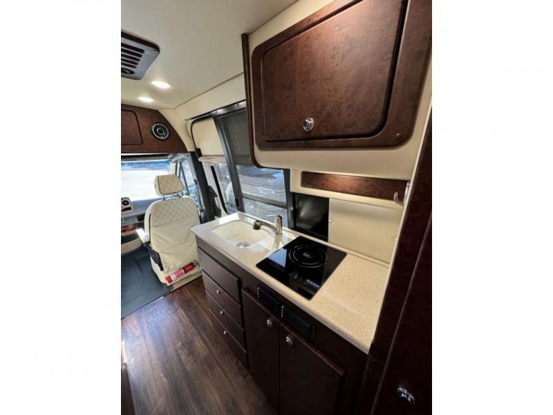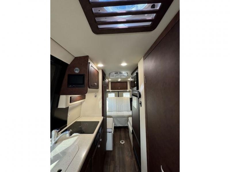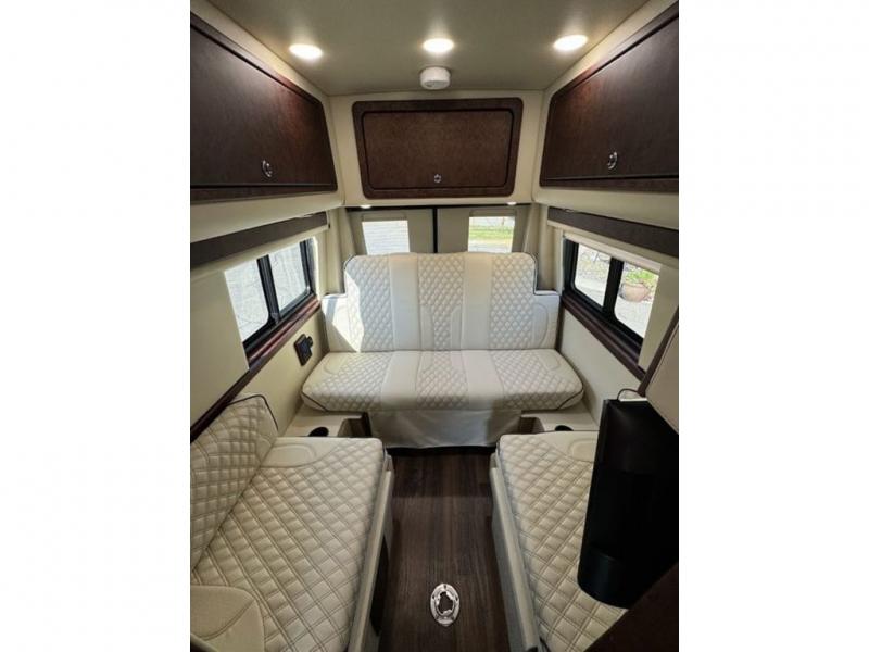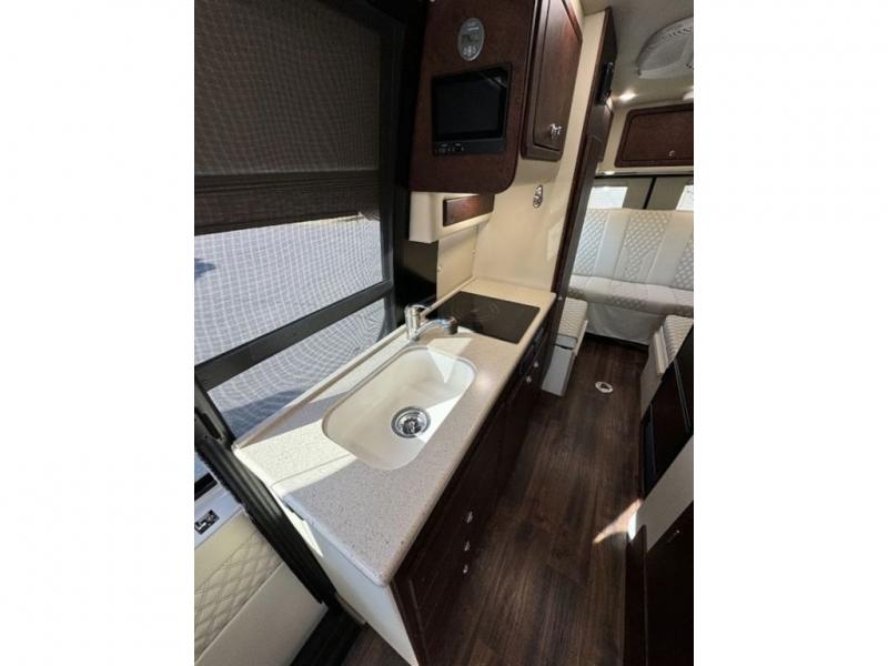 Each Passage Class B diesel motorhome begins with the safety and performance engineering of the Mercedes-Benz Sprinter and includes luxury and convenience throughout. The Suburban water heater offers instant hot water on demand, the convection microwave and induction cooktop allow you to make meals whenever you like, and the 12 Volt/110 Volt refrigerator allows you to store cold items while traveling. The style and comfort of the hand-stitched leather seating, polished wood veneer cabinets, and solid surface countertops will impress you every time you take to the road. You also have the convenience of technology with a 100-Watt rooftop solar charging system, an HDMI input, and a location prepped for satellite TV and Wi-Fi!