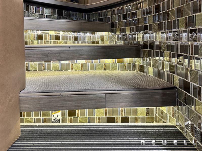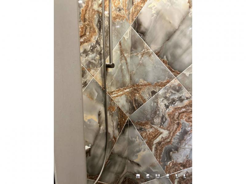Heated faux wood tile flooring throughout