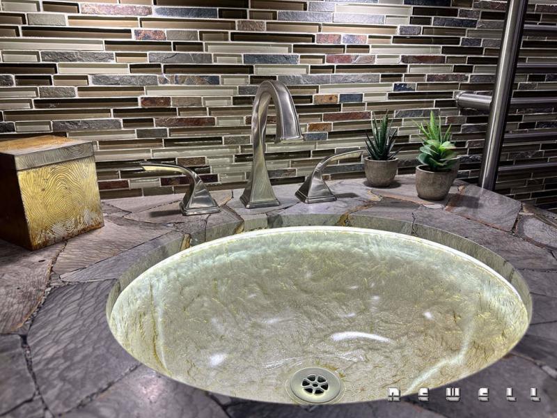 Cambria Harlech countertop at recliner side table/credenza