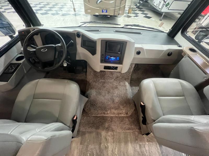 Traveling in this motorhome will be so comfortable you won't want to go home after a long trip. The 6-way power driver seat will provide a smooth ride, and the passenger workstation will allow the co-pilot to check their email while on the road. When you arrive at the campsite, prepare a quick lunch on the three burner cooktop and you can enjoy it at the booth dinette. You'll find convenient features inside, such as a flip-up counter in the kitchen, drawers under the booth dinette, and two slides for added space. Freshen up in the full bath that includes a radius shower with a skylight, then head to the rear bedroom for a great night's rest on the slide out queen bed. If you can't fall asleep right away, just watch a show on the bedroom 32" LED TV!