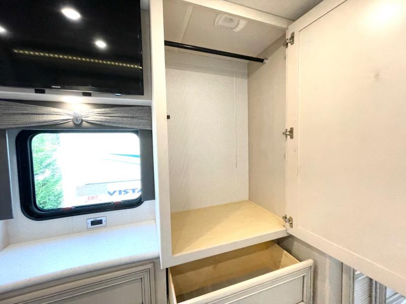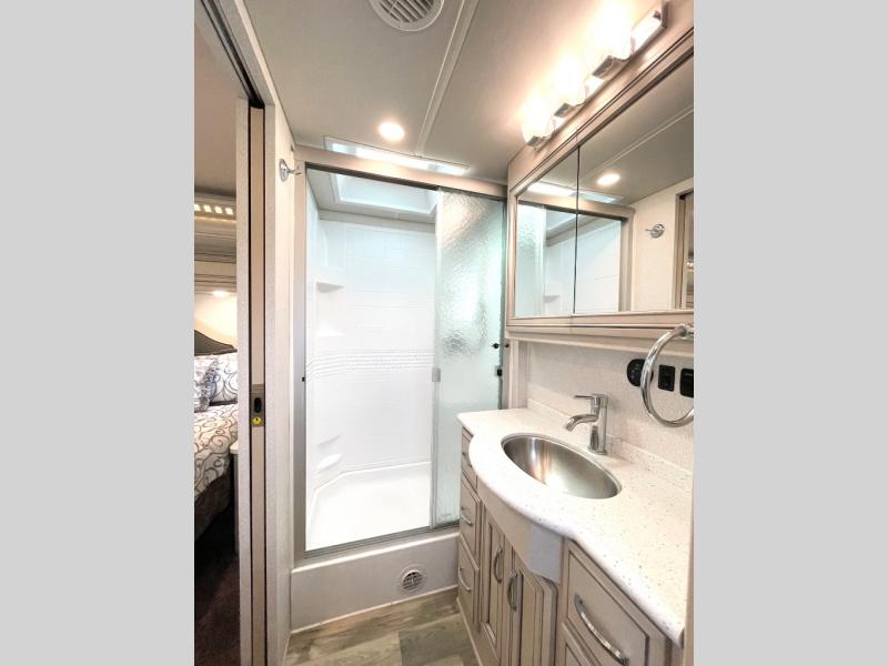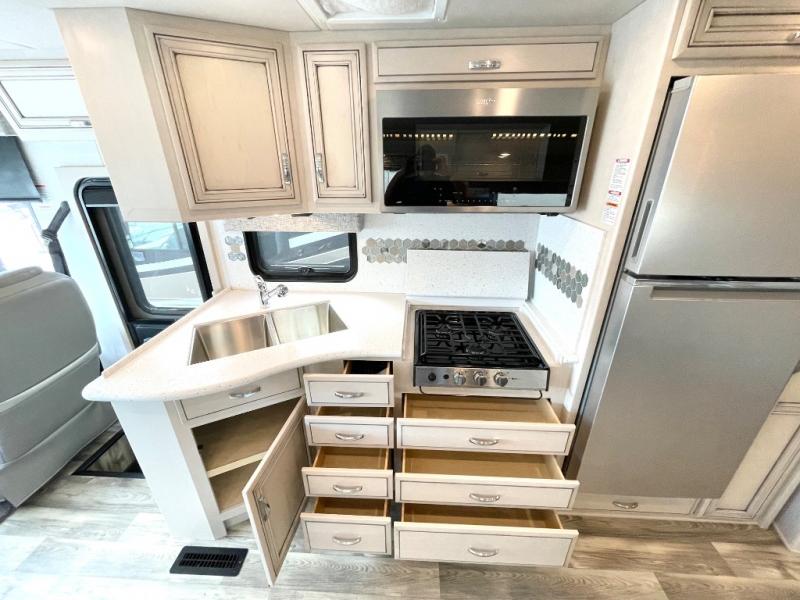 This motorhome is the perfect unit when traveling with family since there is a bath and a half and plenty of comfortable living spaces. The tri-fold sofa and booth dinette has a great view of the LED TV and dry bar, and the pantry is close by to grab a snack. You and your spouse will love the master suite with its slide out king bed, dual shirt closets, and your own Samsung LED TV. After dinner, head out side to sit under the power awning with LED lights, or sit around the campfire to roast marshmallows!