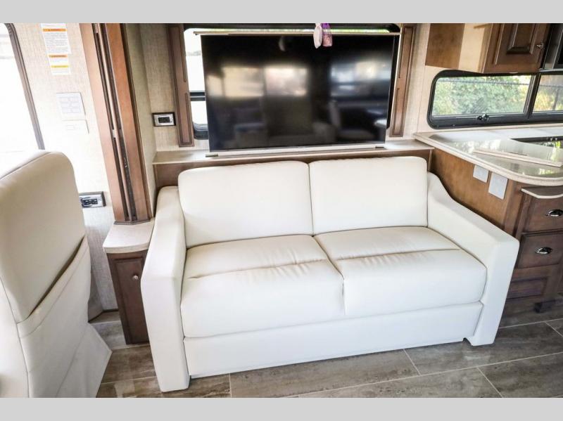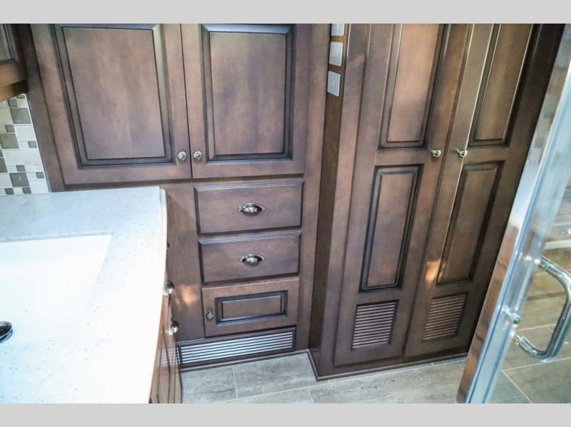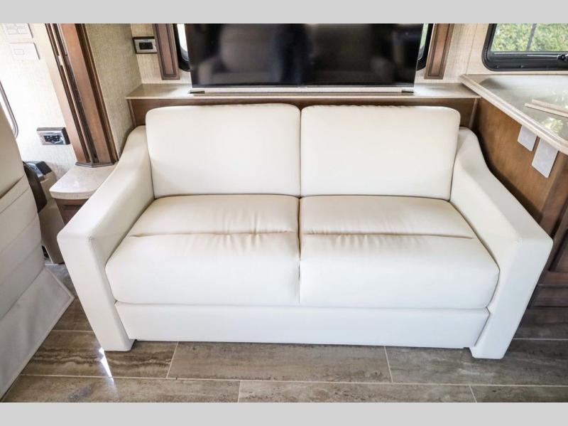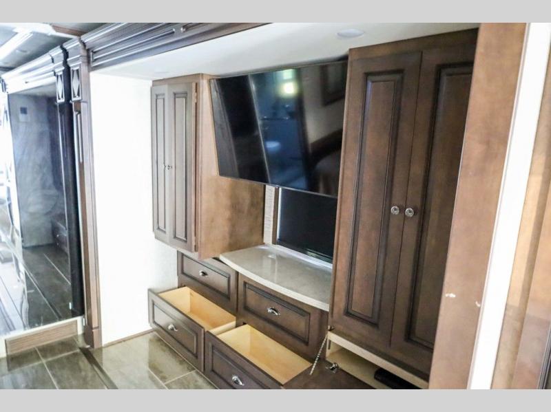 The Dutch Star Class A diesel motorhome by Newmar starts with a Freightliner or Freightliner tag axle chassis with 450Hp, gelcoated fiberglass exterior sidewalls, and a Freightliner V-Ride axle suspension for a smooth ride. You also have the option to choose the Spartan K2 tag axle chassis with 450Hp on floorplans 40' - 43'. Newmar's industry-exclusive full-paint Masterpiece features four different exterior graphics to choose from, plus there are four interior decor options and four wood options so you can add your own personal touch. These models include high-gloss hardwood cabinetry, super-polished solid surface countertops, stainless steel appliances, plus tile flooring in the kitchen, bath, bedroom, and living area for a luxurious look. All your entertainment needs will be meet with a Samsung LED 4K TV and a Sony Blu-ray disc player in the living room and bedroom, a Bose Solo 5 sound bar, plus USB charging ports for your tablet and phone.