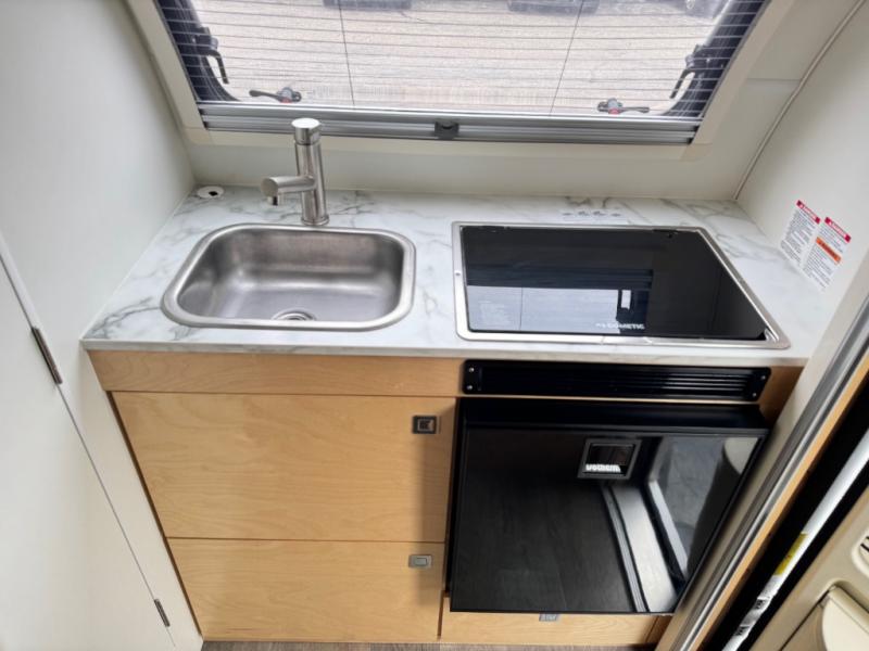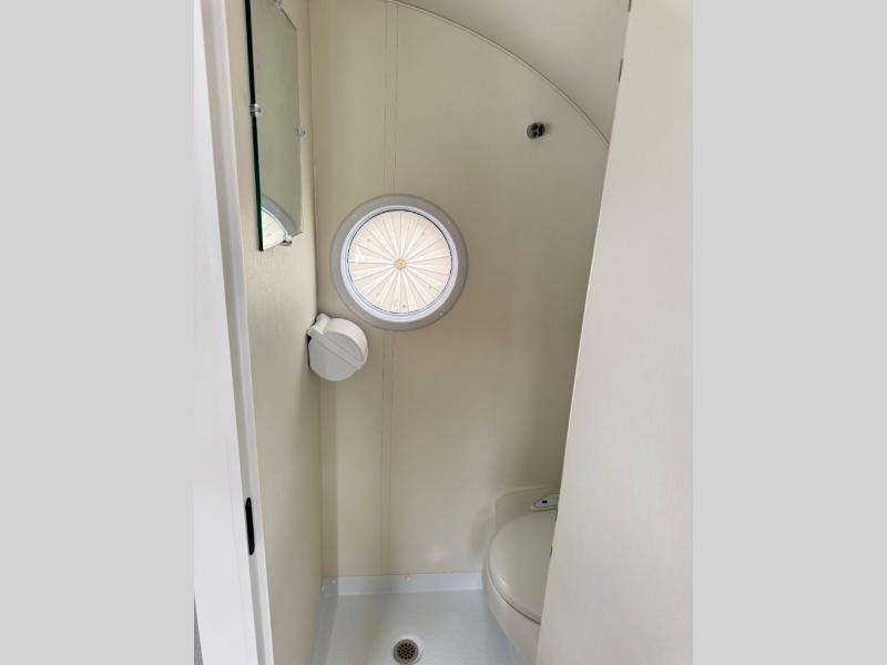 When you decide to take off, it is easy with this teardrop! You can explore the hillside or the valleys and sleep inside in total comfort on the U-Shaped seating that becomes your expandable full/split bed, whichever you choose to setup for the night. Your electronics will stay charged with the dual 110/USB ports, and your tummies will stay full using the galley kitchen amenities. There is a wet bath complete with a toilet, sink and shower to keep you refreshed, plus there is an exterior shower.