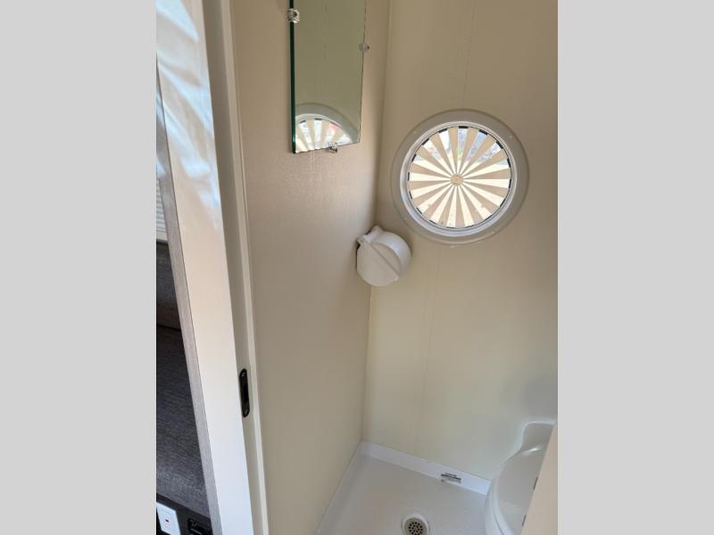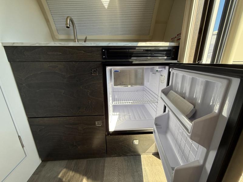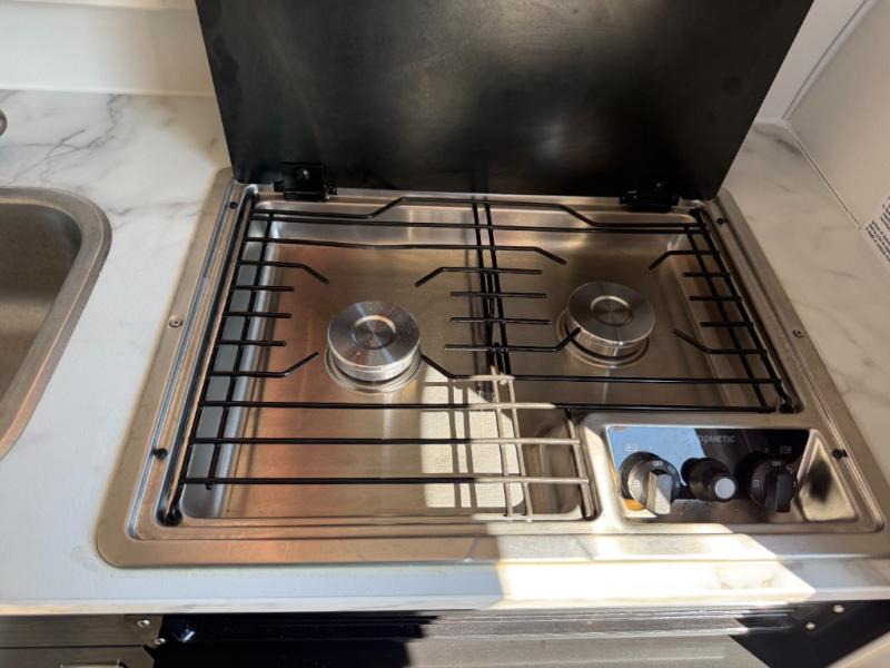 When you decide to take off, it is easy with this teardrop! You can explore the hillside or the valleys and sleep inside in total comfort on the U-Shaped seating that becomes your expandable full/split bed, whichever you choose to setup for the night. Your electronics will stay charged with the dual 110/USB ports, and your tummies will stay full using the galley kitchen amenities. There is a wet bath complete with a toilet, sink and shower to keep you refreshed, plus there is an exterior shower.