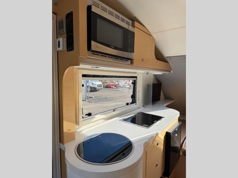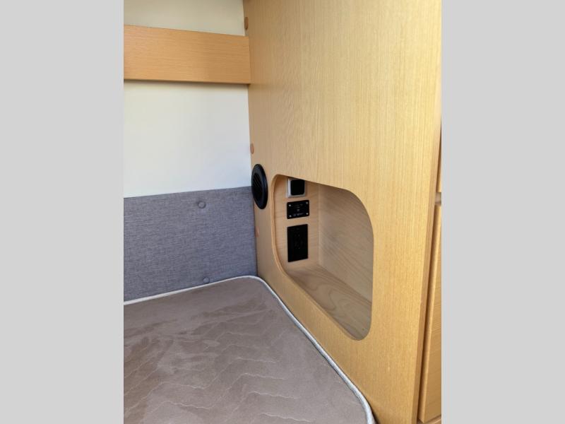 The TAB 400 teardrop trailer by nuCamp RV provides sleeping accommodations for three people, a Bluetooth media center, a wet bath, and kitchen amenities. The European styling offers modern features and innovative components to enjoy camping anywhere, and the Nautilus water management system is a prime addition to the TAB 400. You can choose to add the optional Boondock Package so that you can be adventurous whenever you like. This package comes with enticing features like 15" sport rims, an aluminum utility platform, a heavy-duty pitched axle, and a solar package. Take one home today!