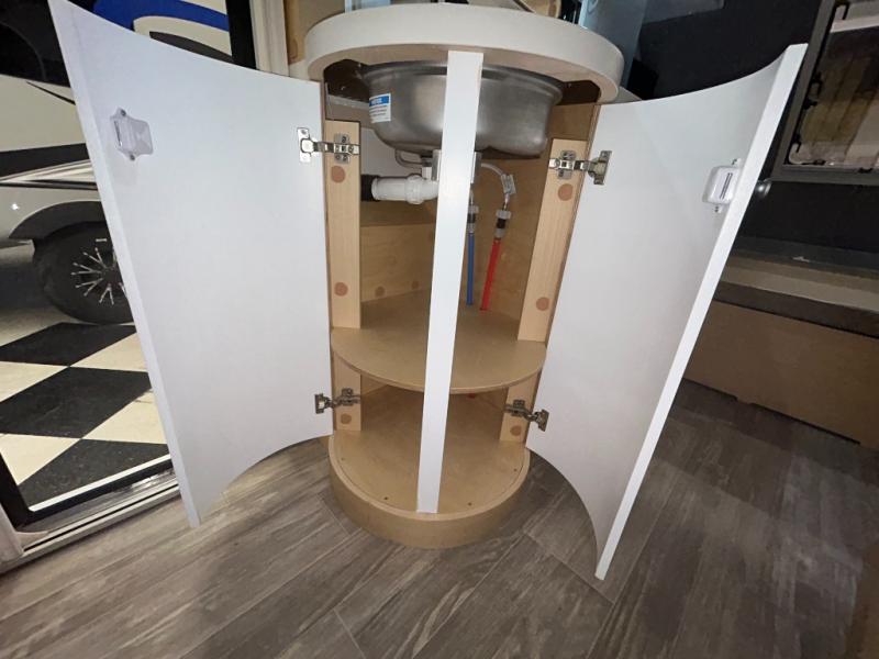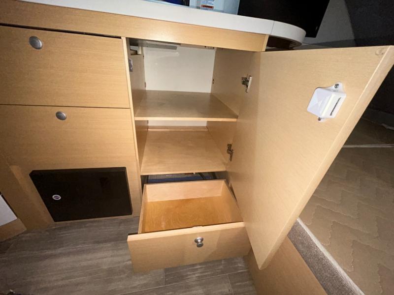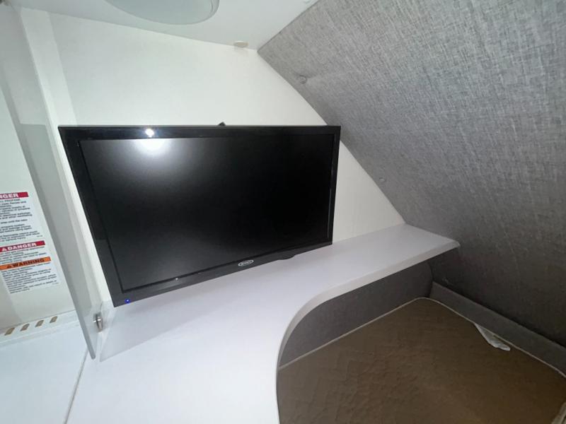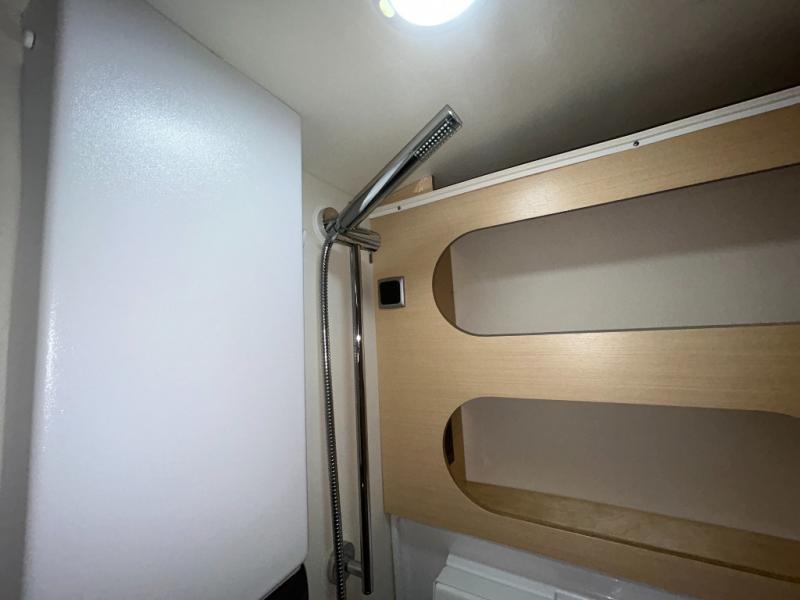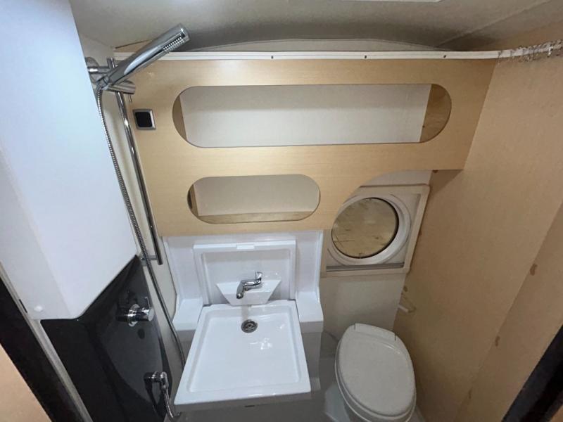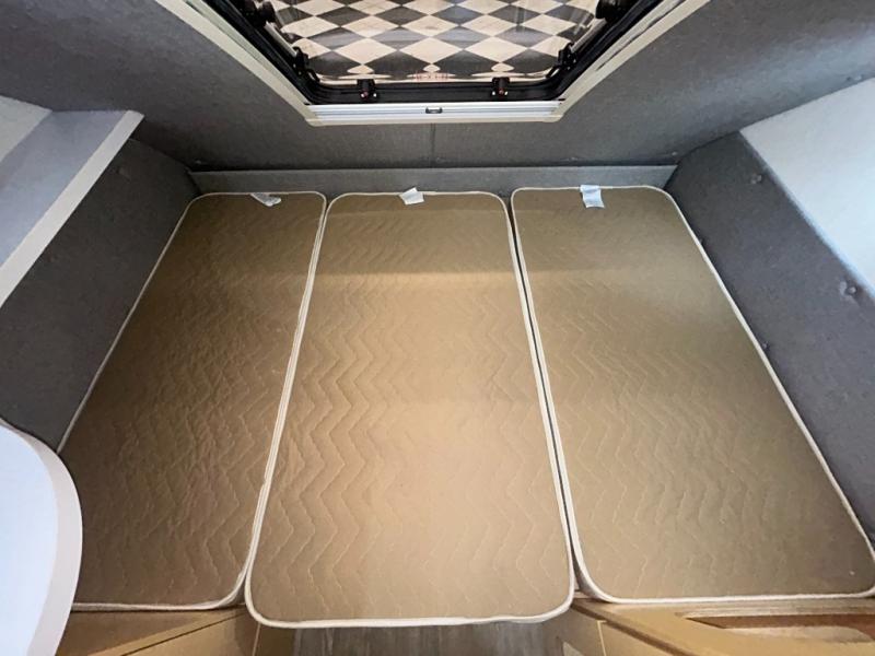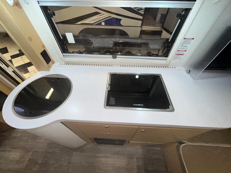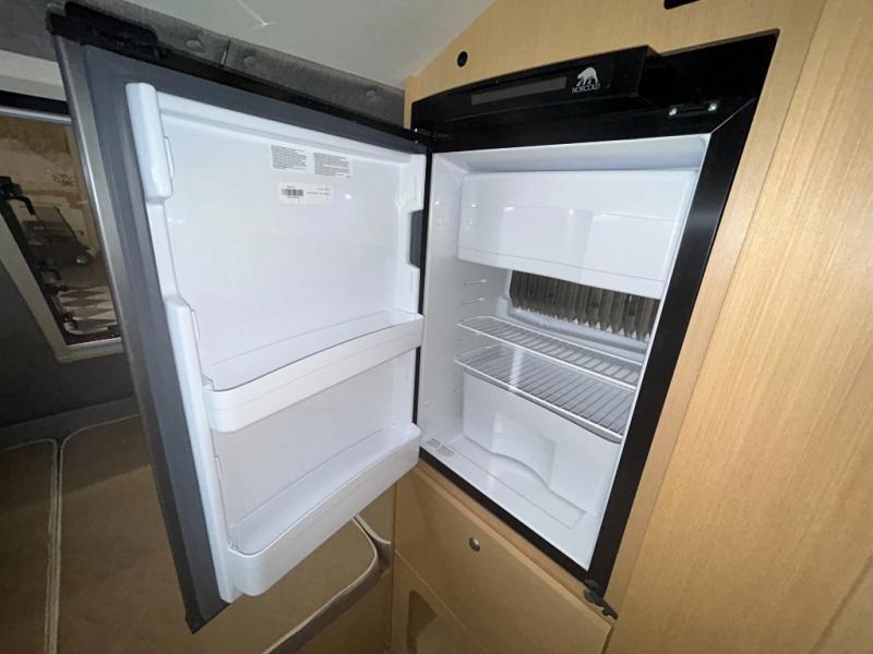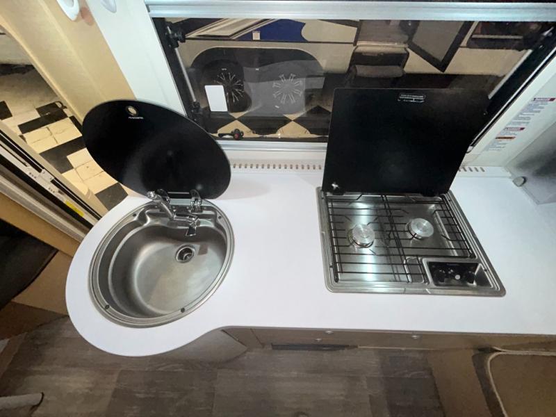 Easy to tow and clean, this TAB 400 teardrop trailer will have you scheduling all your camping excursions for the year! You will have your own RV queen bed while your little one sleeps on the second sleeping area that has been converted from two seats and a dining table into a bed. Everyone can stay clean and refreshed after hiking the trails thanks to the wet bath with fold-down sink. You can make meals inside on the two-burner stove and store your leftovers in the two-way refrigerator. At night, be sure to look out the front window at the stars and enjoy the air conditioning or heat depending on the season. With this model, you also have the option to switch out the two-way refrigerator for the optional three-way refrigerator.