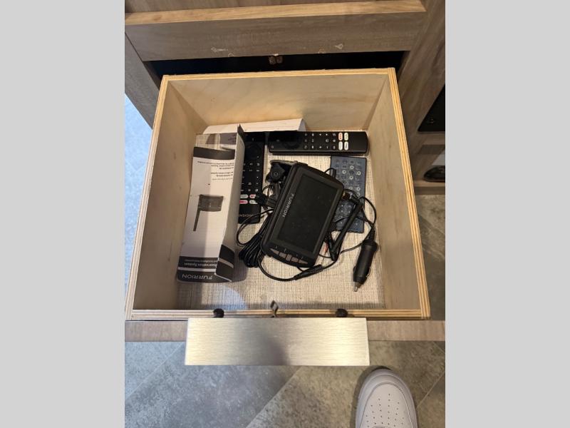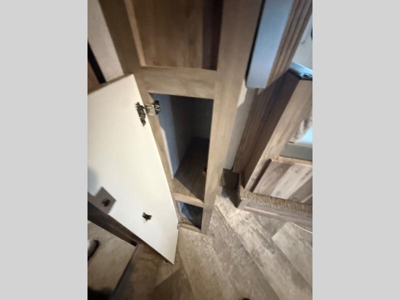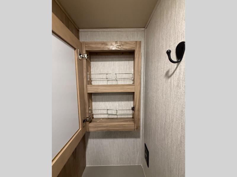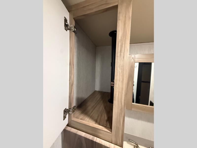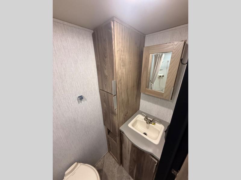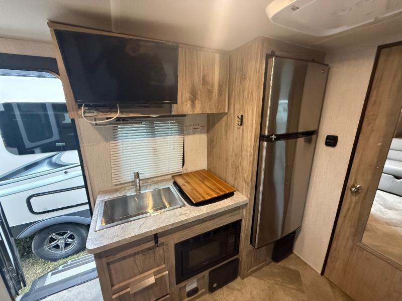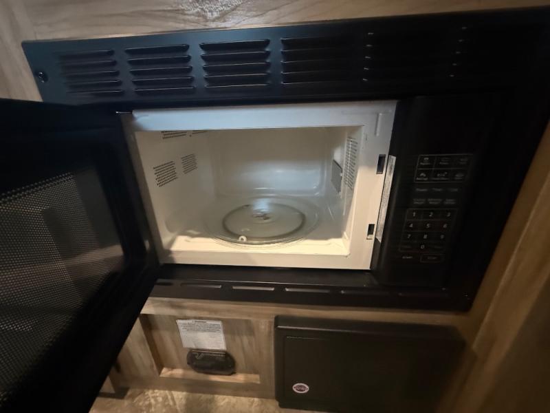 Head to your favorite spot with your favorite person in this travel trailer! The front Murphy bed offers versatility with a sofa to sit on during the day and a 60" x 80" queen bed to sleep on at night, plus there are wardrobes on either side for your clothes. Prepare your best home cooked meals with the two burner cooktop, 10 cu. ft. refrigerator, and even the microwave then enjoy them at the 38" x 70" booth dinette slide which can be transformed into an extra sleeping space. You even have an entertainment center for those days when mother nature rains on your parade. The full rear bathroom has a 32" x 32" radius shower to clean up in after a fun day at the beach and a linen closet to keep your towels close. The exterior has a 14' power awning with LED lights to highlight the good times and front outside storage to bring all of your camping necessities!