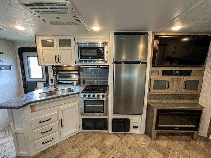 You know it's a great day when it starts with a Palomino Puma travel trailer, fifth wheel, or toy hauler because nothing else is better suited for adventure! There is a Puma for every lifestyle, and there are plenty of features that will enhance each of those lifestyles too. The Puma's construction is better built for lasting performance. The Puma has an AlphaPly roofing membrane, a King HD TV antenna, a smooth, aerodynamic radius front metal with bold exterior graphics, residential-grade carpet with pad on slide outs, and a 5/8" Araucoply plywood floor decking. The Puma also comes packed with value since it gives you the features you need while traveling, like an electric awning with LED lights, preparations for WiFi, a Bluetooth stereo, an enclosed underbelly, an outside shower, and exterior speakers. Plus, the roller shades will help you keep the interior dark and private when you need it to be.