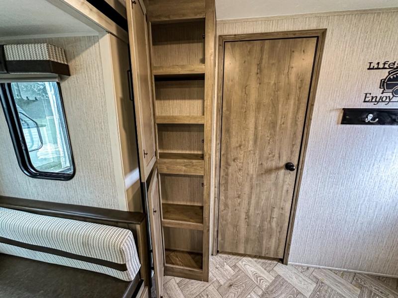 If you are looking for a bunk model to accommodate your large group, then this Puma travel trailer is just what you need! This model gives you a full bathroom that has the second exterior entry door so that you can get quickly get back outside to continue playing. Plus, the bathroom is next to the double-size bunks so that your kids won't have to wander far in the middle of the night. Make memories with your kids while roasting marshmallows, playing board games at the U-shaped dinette, and using the outside shower to rinse off after getting dirty from your trail hike. You also have plenty of interior comforts waiting for you every evening after playing outdoors, like the private bedroom up front!
