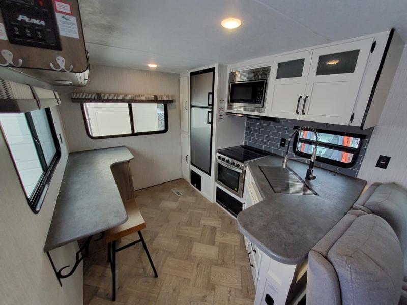If you love adventure and enjoy the outdoors, the rugged-built Palomino Puma travel trailers are a great choice for making your next getaway fun and trouble free! The Puma is offered in a variety of sizes and layouts with plenty of bunk models available for the kids. You will find excellent features included with each of these models, such as Beauflor linoleum flooring, an enclosed underbelly, a large pass-through baggage door, and pre-wiring for solar power. And, the electric awning with LED lights is such a great addition to the exterior because it allows you to effortlessly enjoy shade from the sun, protection from the rain, or illumination once it's dark.