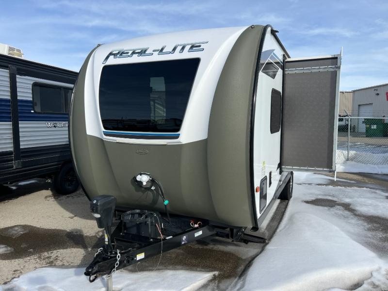 The Real-Lite Mini travel trailers by Forest River are easy to tow and easy to love! Each model includes Azdel construction, which provides better insulation, is lighter than wood, and resistant to rot. There are four stabilizer jacks for easy set up, a Hi gloss white exterior, plus a laminated roof that will be easy to clean after a weekend in the woods. Head inside to find ball bearing drawer guides, an AM/FM Bluetooth stereo, plus a 13,500 BTU A/C system to keep you cool during those warmer months.