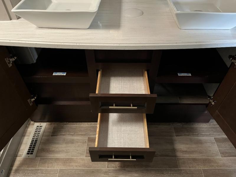 The master bedroom offers a cozy and private retreat after a day of adventure, complete with ample storage, comfort-focused design, and separation from the main living area. Thoughtful touches throughout the bedroom help create a relaxing, restful environment that lets you recharge for tomorrow’s road ahead.