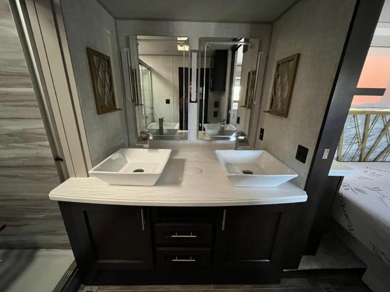 Whether you’re chasing great views, planning coast-to-coast journeys, or setting up at your favorite campground, the River Ranch 390RL offers exceptional living space with practical amenities that make every adventure feel effortless.