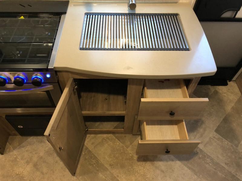 Additional Features: Power tongue jack, slam latch baggage doors with magnetic catches, black tank flush, and aluminum wheels.