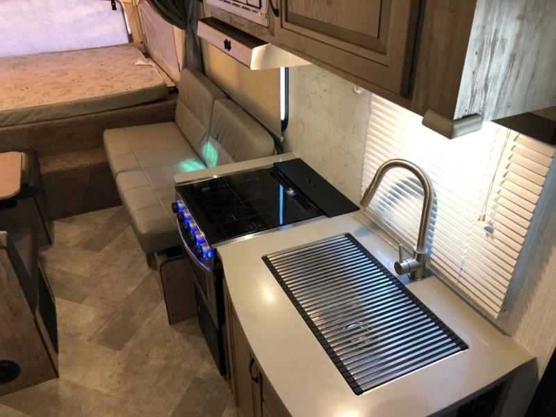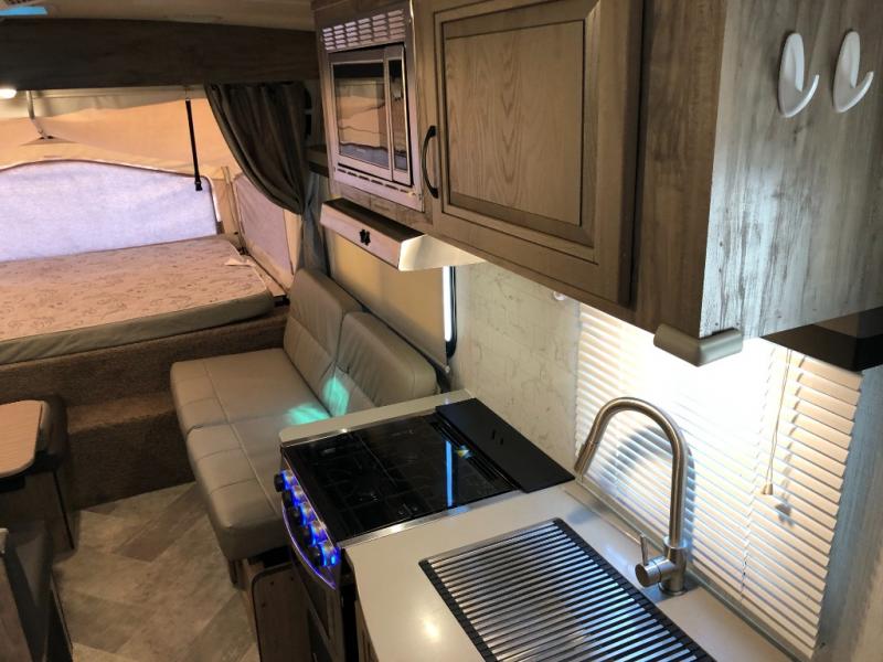 Additional Amenities: LED lighting, USB charging stations, roller shades, and a skylight in the kitchen area.