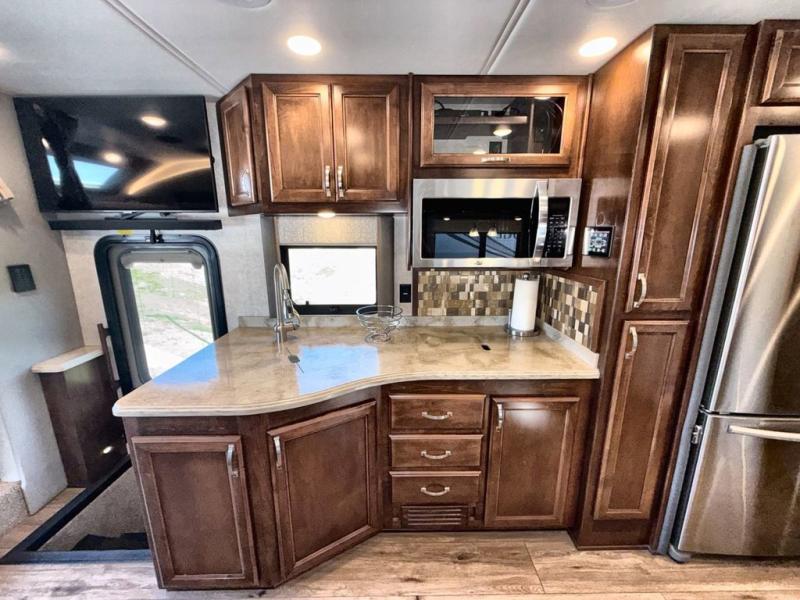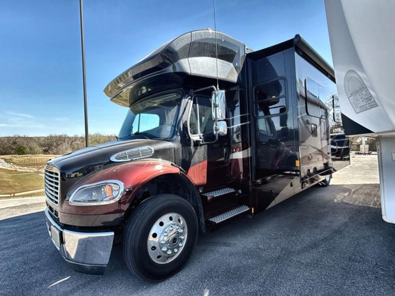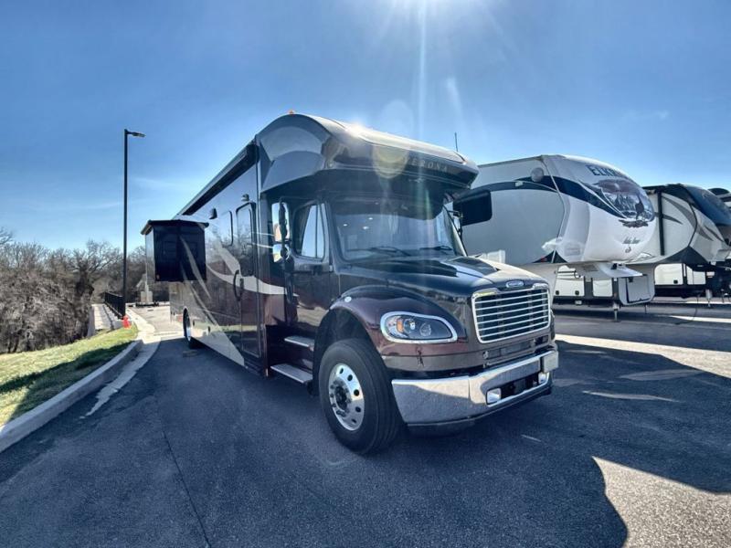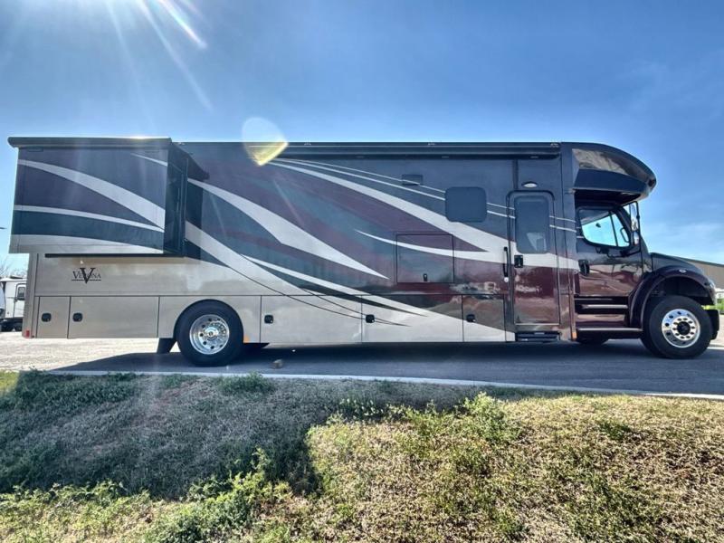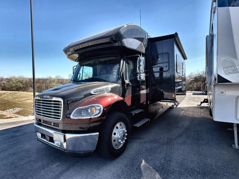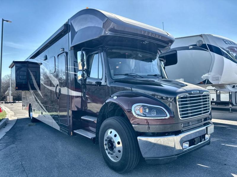 Flexibility, functionality, and attention to detail is what you will find in each one of these Renegade Verona Super C diesel motorhomes! A Freightliner M2 chassis and a Cummins 350HP 3200TRV Allison transmission power these units. The coach is all electric with one 3000 watt Magnum Hybrid inverter and a 250D AquaHot hydronic system is for heating. The solid hardwood cabinets and solid surface countertops are just a couple of the luxurious details throughout. A multiplex system with color touch screen and Bluetooth app control is easy to use. The electrical lateral arm awning has integrated LED lights to light up your nights as you socialize together and enjoy the fresh night breeze. Come choose your favorite model today!