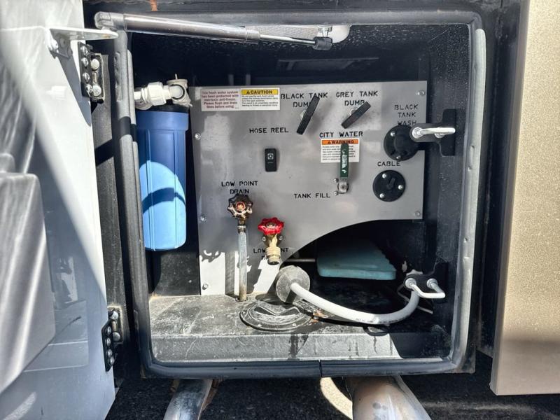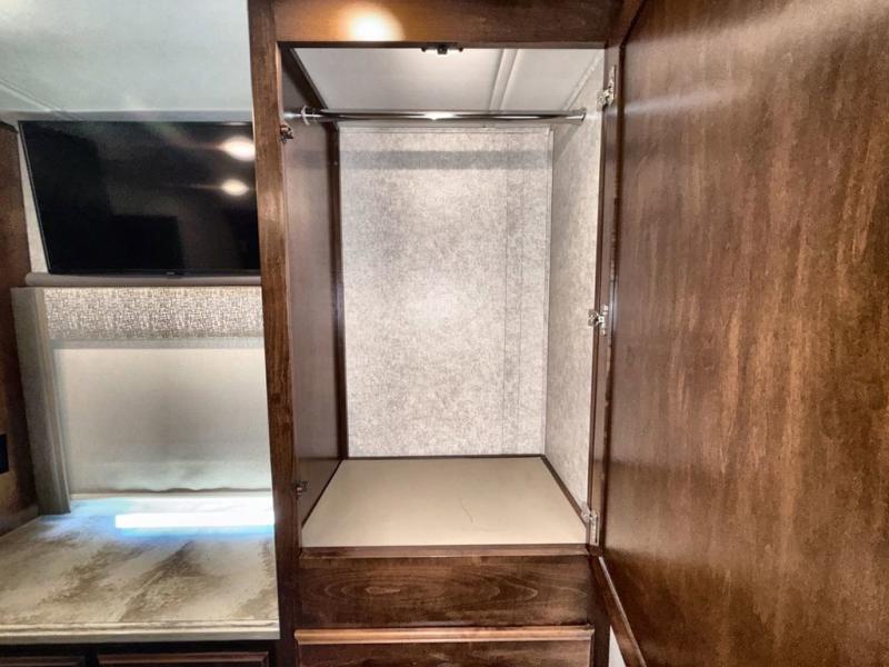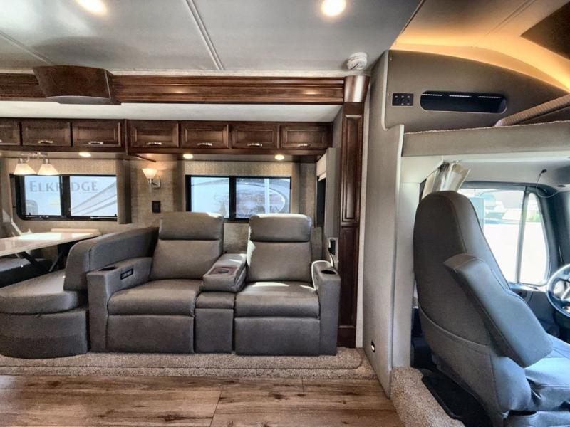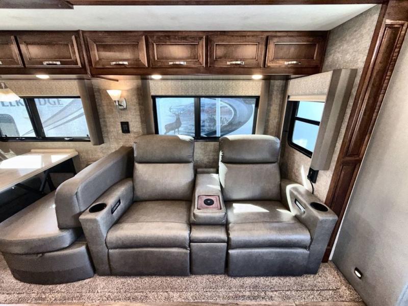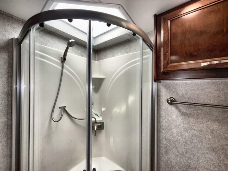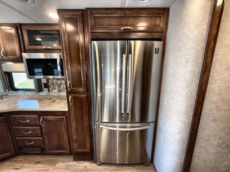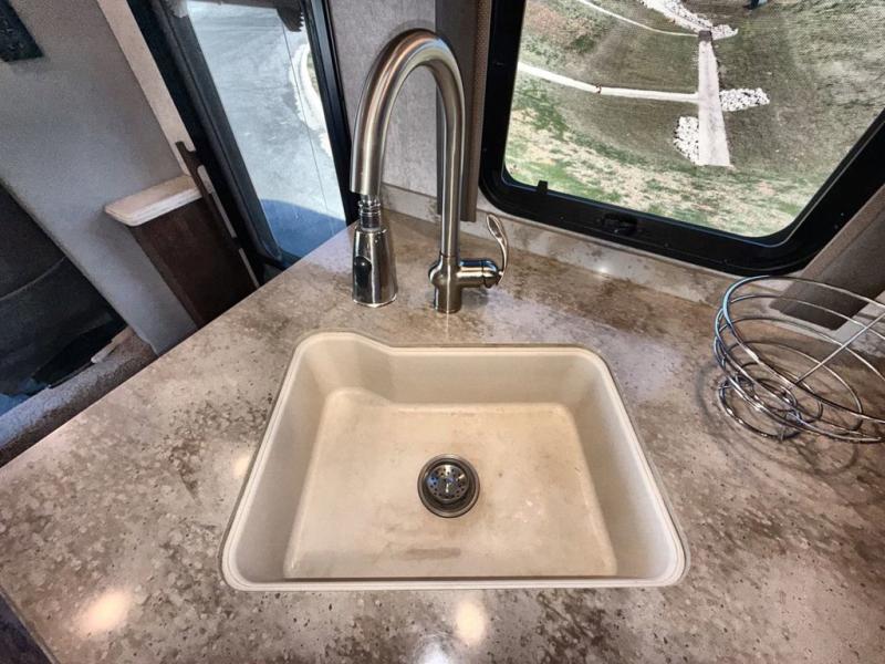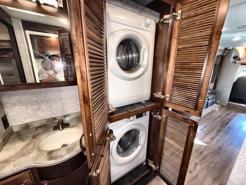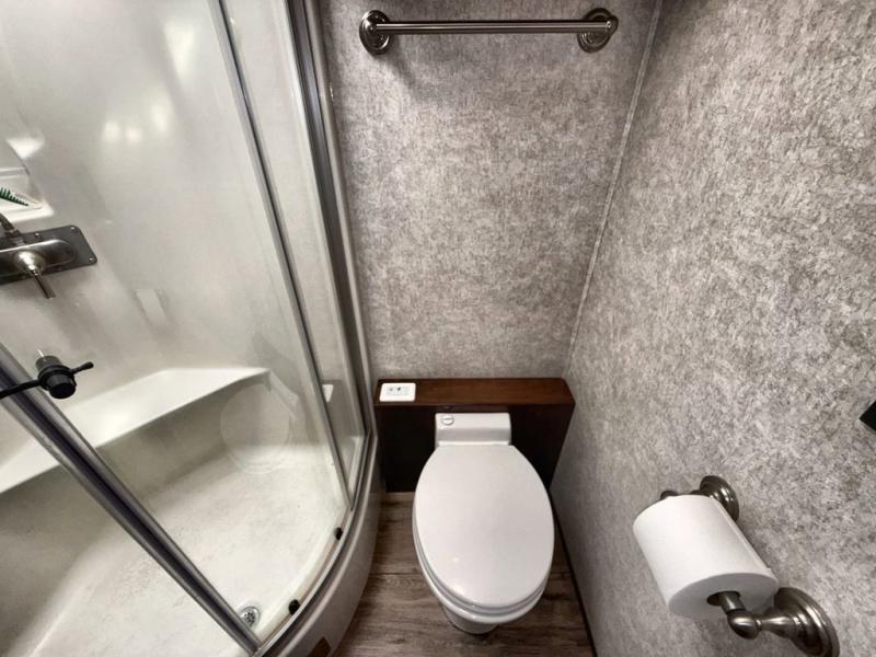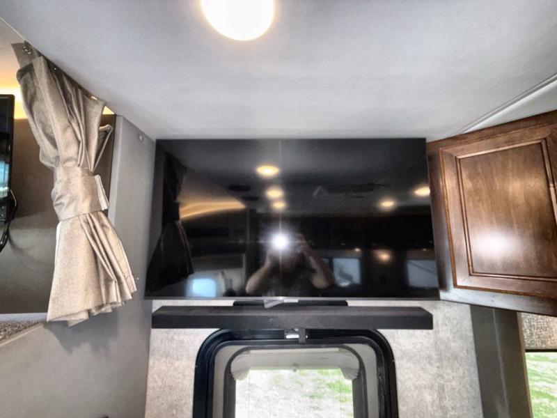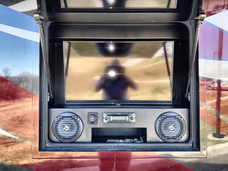 Travel the country in true luxury with this motorhome! The separated bathroom allows one person to take a hot shower in the radius shower while another gets ready for the day with the sink and medicine cabinet, plus there is a closet that is prepped to add an optional washer and dryer. Once you're ready for the day, head to the kitchen, grab some eggs and bacon from the 18 cu. ft. French door refrigerator, and fry them up on the two burner cooktop to enjoy at the booth dinette. If mother nature rains on your parade then you can watch movies on the 43" 4K Smart LED TV across from the slide-a-bed sofa or on the 32" 4K Smart LED TV across from the RV king bed. If you're brave enough, you could even watch it at the outside entertainment center with the 32" 4K Smart LED TV while staying protected by the electric lateral arm with LED lights!