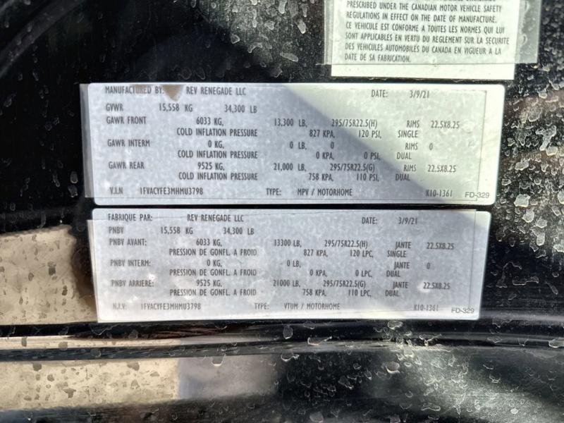 Used 2021 Renegade Verona 36VSB Motor Home Super C - Diesel