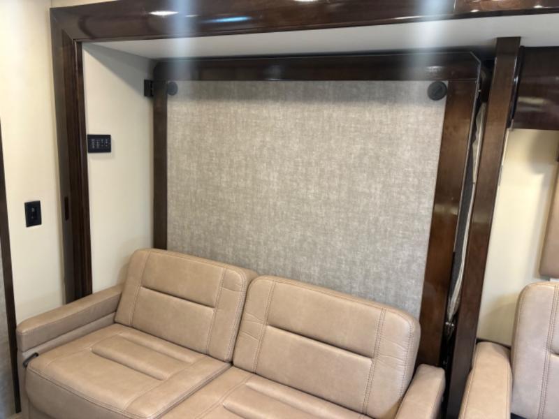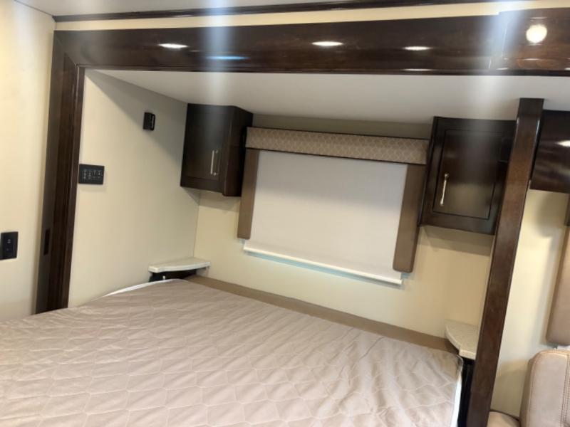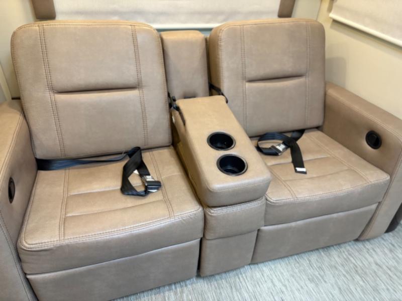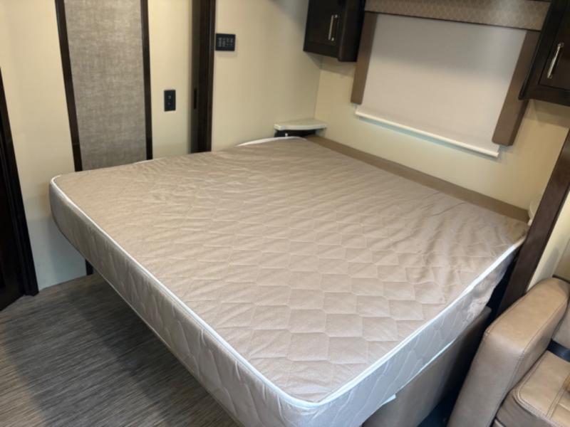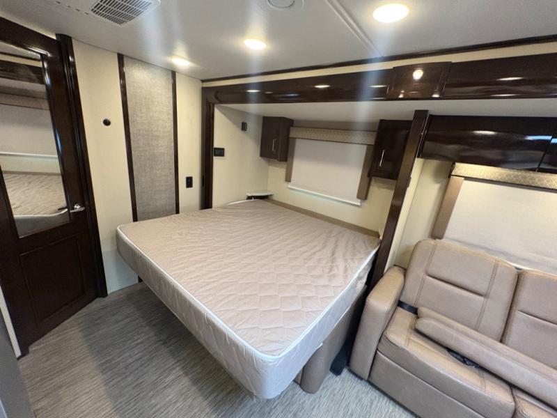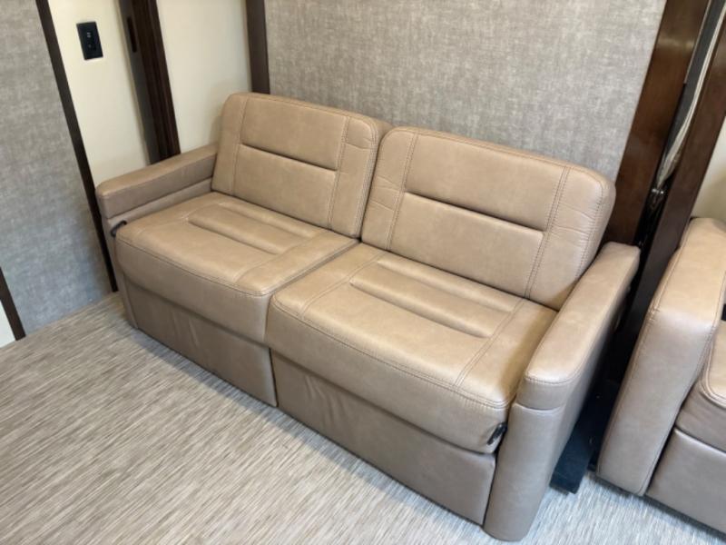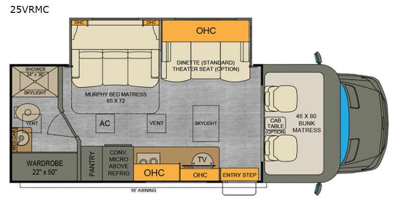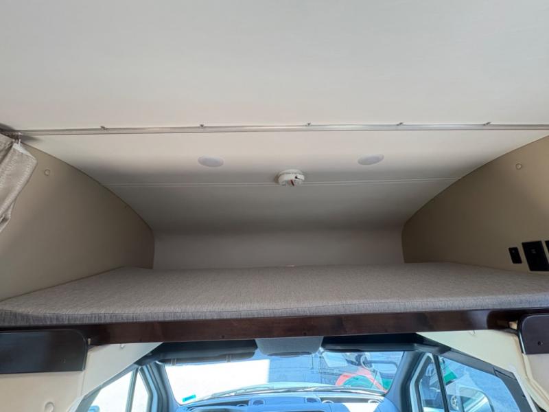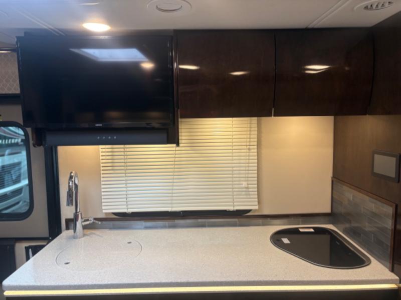 This is the perfect couples motorhome to explore the country! You will stay squeaky clean in the full rear bathroom with the 24" x 36" shower that has a skylight above it and a 22" x 50" wardrobe to store your towels and other toiletries. Depending on what time you enter this unit will determine whether you see the sofa or the 65" x 72" Murphy bed. The kitchen has a two burner cooktop, a convection microwave, and a 7 cu. ft. double door refrigerator to prepare home cooked meals, and a booth dinette to enjoy them at. You could even switch out the dinette for the optional theater seating instead. The 46" x 80" bunk mattress over the cab lets another member join in on the adventure too!