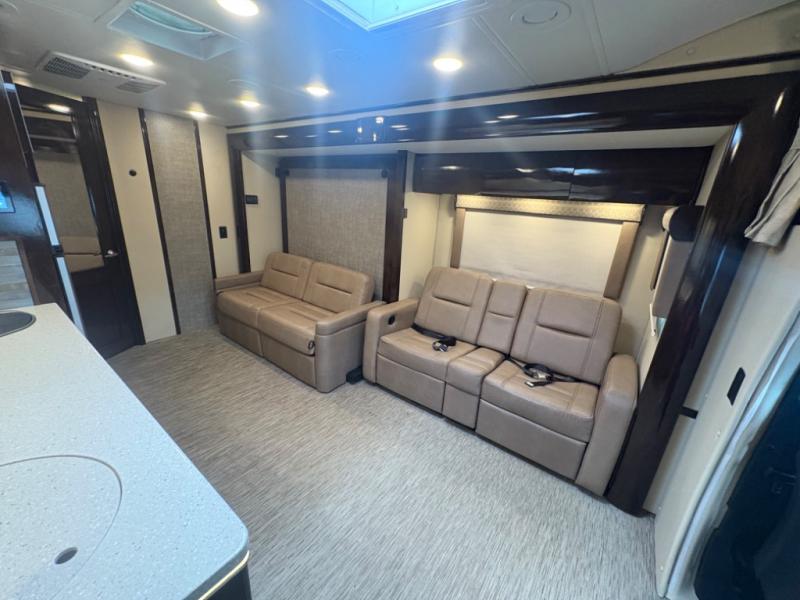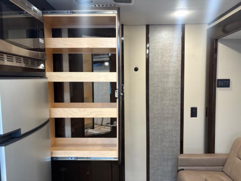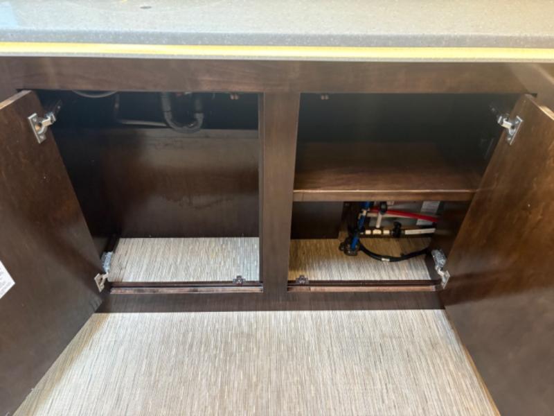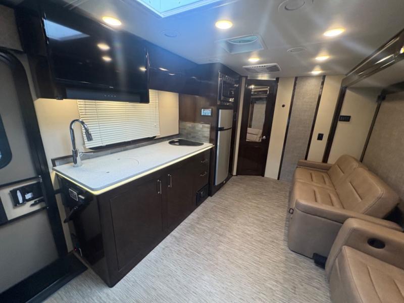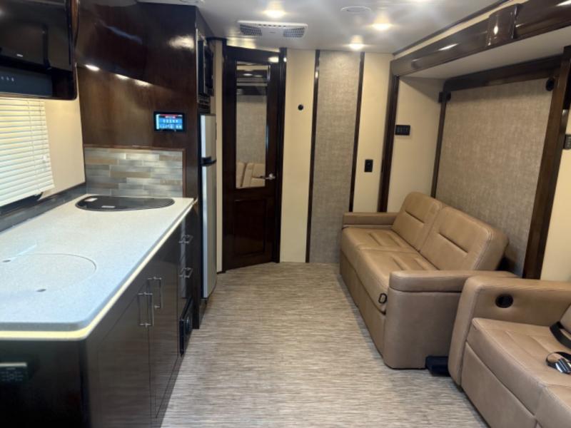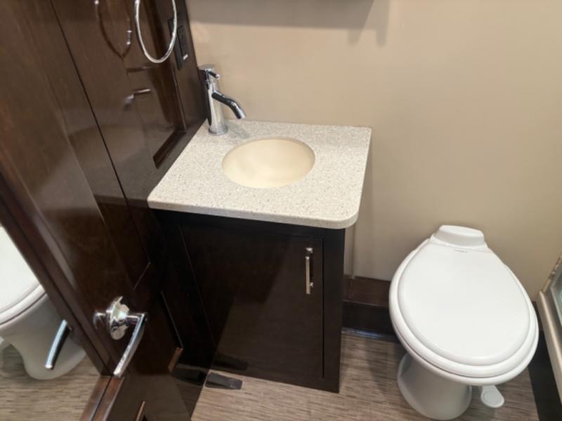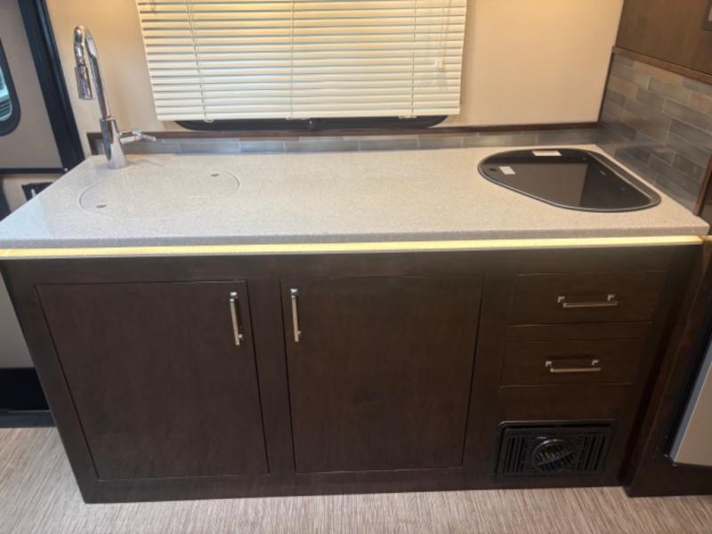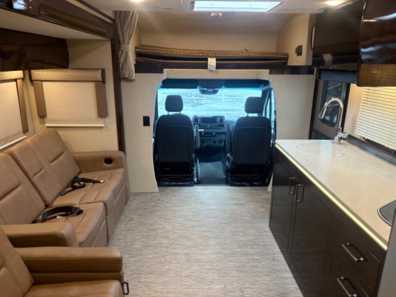 This is the perfect couples motorhome to explore the country! You will stay squeaky clean in the full rear bathroom with the 24" x 36" shower that has a skylight above it and a 22" x 50" wardrobe to store your towels and other toiletries. Depending on what time you enter this unit will determine whether you see the sofa or the 65" x 72" Murphy bed. The kitchen has a two burner cooktop, a convection microwave, and a 7 cu. ft. double door refrigerator to prepare home cooked meals, and a booth dinette to enjoy them at. You could even switch out the dinette for the optional theater seating instead. The 46" x 80" bunk mattress over the cab lets another member join in on the adventure too!