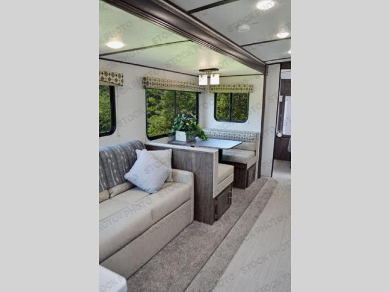 Pack your bags and load up the kids for weekend camping trip in this Intrepid travel trailer that can comfortably sleep five to six people. Mom and dad will appreciate their own private bedroom that includes a queen bed, a walk-in closet for all their clothes and shoes, and their own exterior entry door. You'll find the second entry door leading into the rear kitchen. The chef of the family will everything they need to prepare lunch every day, including a three burner range, and microwave oven. There is even a walk-in pantry to hold all the dry goods. The full bath is centrally located in the middle of the unit that allows everyone easy access, and the entertainment center is right across from the sofa to enjoy a late-night movie!