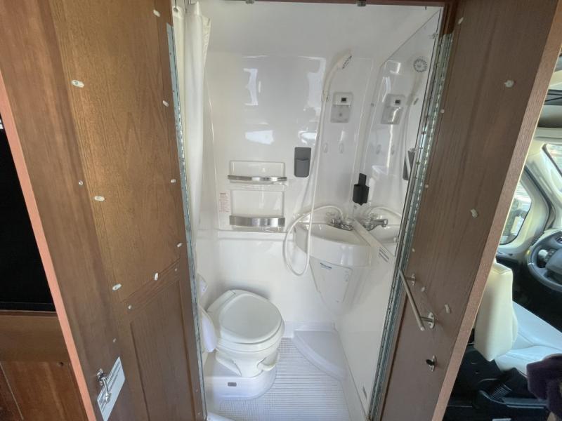 The Roadtrek Class B gas motorhomes are built upon the stylish Ram ProMaster chassis with a 3.6-liter V6 gas engine to power your trips near and far. The rearview backup camera, the stability program, and the Uconnect 3 with navigation and a 5" touchscreen will make the drive just as sweet as the destination. Each model includes a 12V refrigerator, a two burner recessed propane stove with a flush cover and built-in igniter, and ample storage space for all your belongings. The instant hot water system with 36,000 BTU will provide hot water when you need it, and the 16,000 BTU propane automatic furnace will keep you warm if you travel year around.