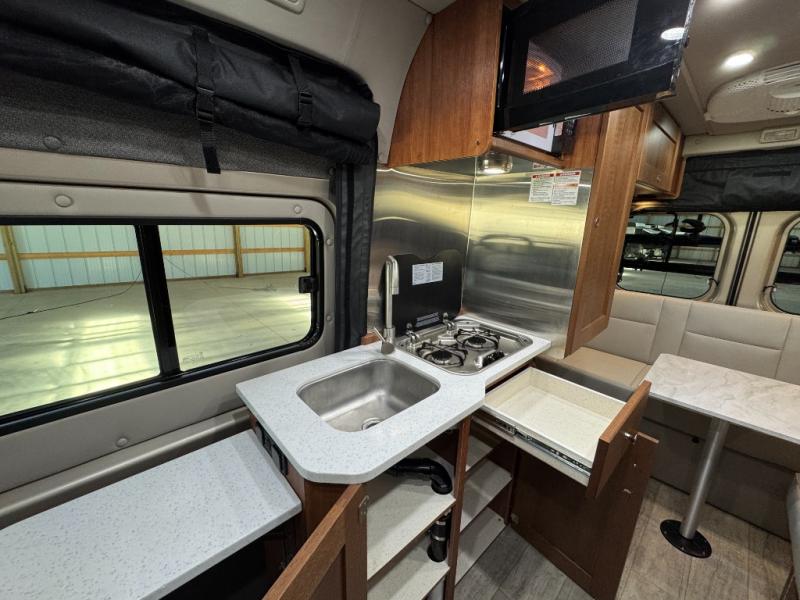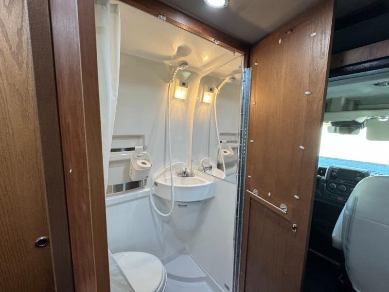 The Roadtrek Class B gas motorhomes are built upon the stylish Ram ProMaster chassis with a 3.6-liter V6 gas engine to power your trips near and far. The rearview backup camera, the stability program, and the Uconnect 3 with navigation and a 5" touchscreen will make the drive just as sweet as the destination. Each model includes a 12V refrigerator, a two burner recessed propane stove with a flush cover and built-in igniter, and ample storage space for all your belongings. The instant hot water system with 36,000 BTU will provide hot water when you need it, and the 16,000 BTU propane automatic furnace will keep you warm if you travel year around.