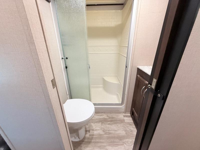 With any Phoenix Lite fifth wheel by Shasta RVs you will appreciate Turn Point engineering that will allow you to turn up to 90 degrees for hassle-free towing and parking. The vacuum bonded and aluminum framed sidewalls with Azdel is lighter than wood, rot-resistant, and provides better insulation. Inside, you will enjoy many comforts such as, Congoleum Carefree flooring, decorative modern window box valences, and a Black Label pillowtop mattress. Head outside to relax under the electric awning with LED lights, or enjoy the marine-grade speakers with LED lighting. There is even an outside shower with hot and cold water to fill the dogs water bowl or wash off your hiking boots!