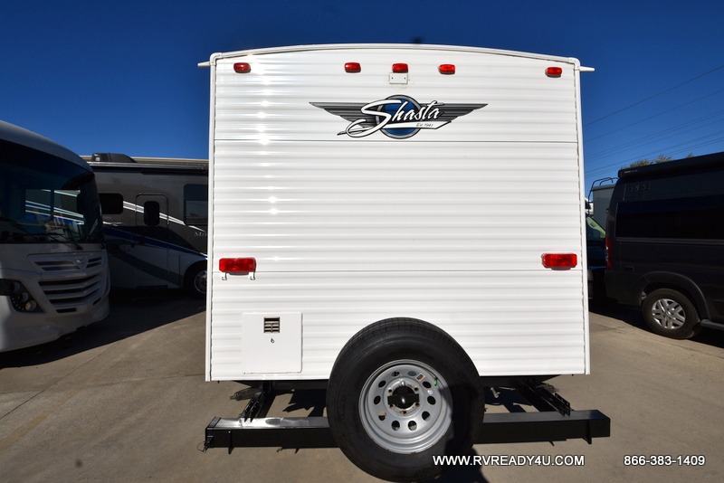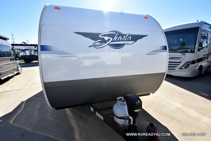 You are sure to find a Shasta travel trailer or toy hauler by Shasta RV that will fit your needs with a variety of models packed with convenience and value! They are constructed with a cambered steel I-beam frame, Diflex II TPO roof material, and a .024/.030 aluminum exterior skin with an 8' exterior width, plus the aerodynamic radius front profile makes it easier to tow. Their interiors are bright thanks to the LED lighting and are modern with woodgrain cabinetry and residential styling countertops. Each model includes a Shasta sanitize station so you can clean up after fishing, plus there is an outside shower to wash the mud off your hiking boots! Each one is also prepped for you to add extra conveniences like the back-up camera, a solar panel, and even Wi-Fi!