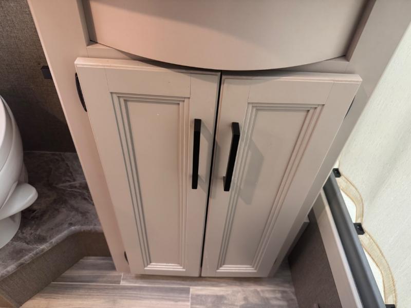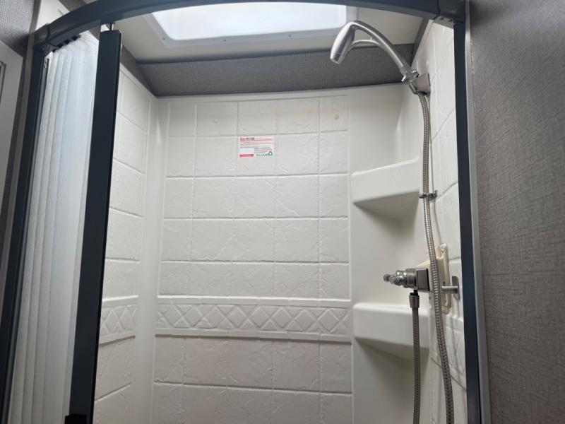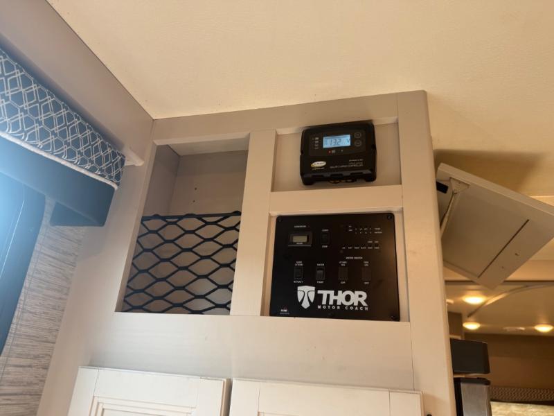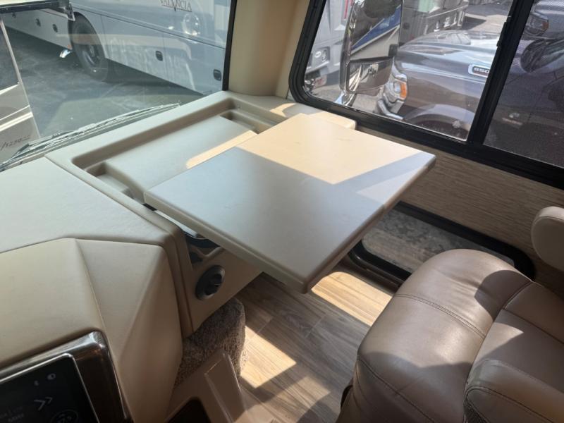 Thor Motor Coach A.C.E. Class A gas motorhome 27.2 highlights: Serta King-Size Bed Rear Corner Bath 39" LED TV Exterior 32" TV Drop-Down Bunk Jack-Knife Sofa Dream Dinette Searching for the perfect Class A motorhome to take across the country? Just imagine drinking your morning cup of coffee in the captain's chairs while placing your book on the stow-away coffee table. You might even choose to complete some work at the dash workstation with 110V and 12V outlets while your spouse takes a walk around the RV park. When it's time to make breakfast, you will find full kitchen amenities, plus you can watch the 39" LED TV while dining or relaxing after cooking. This model includes plenty of storage space, including a pantry, broom closet, and dinette storage drawer(s). You will also find your own king-size bed and a full bathroom, plus extra sleeping space for overnight guests. Finally, a family-friendly, pet-friendly Class A gas motorhome, the ACE by Thor Motor Coach. Each model includes an Axxera 10" touchscreen dash radio with Bluetooth and Sirius/XM Radio, a back-up monitor, plus reclining/swivel Leatherette captain's chairs for the ultimate driving experience. The A.C.E is constructed with welded tubular steel floor, roof, and sidewalls, a one-piece fiberglass front cap, and automatic leveling jacks with touchpad controls to provide easy set-up. And you don't have to worry about leaving anything behind since these units include Rotocast storage compartments for all your gear. Inside, you will enjoy residential vinyl flooring throughout, glass tile backsplash in the kitchen, and a spacious bedroom with a designer headboard to name a few comforts. Set out to new destinations in an A.C.E Class A motorhome by Thor Motor Coach today!