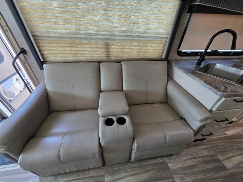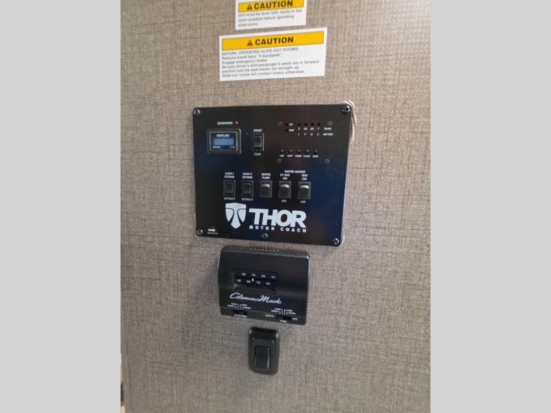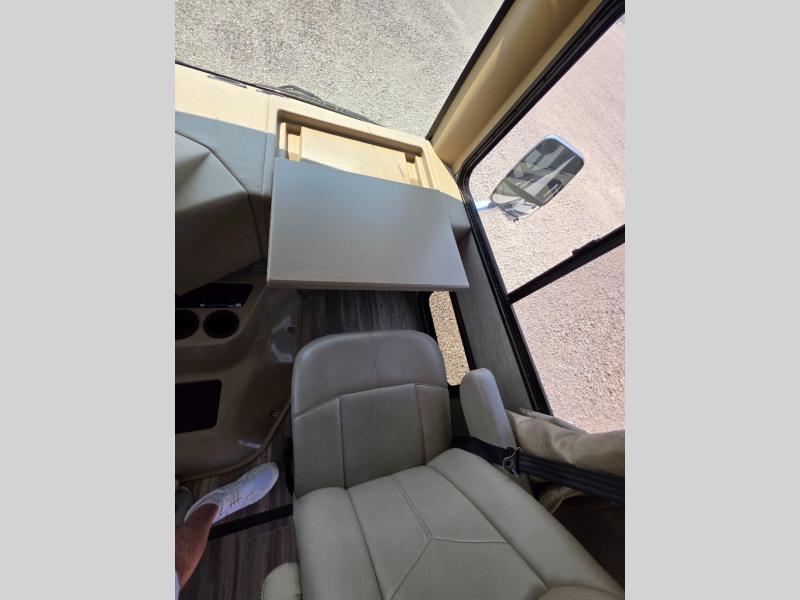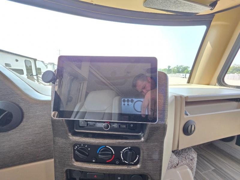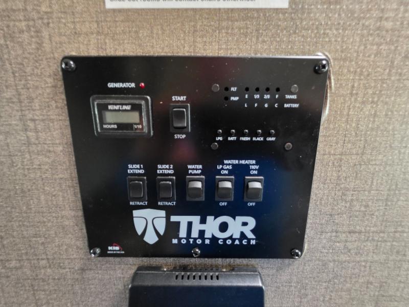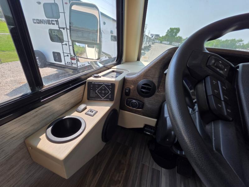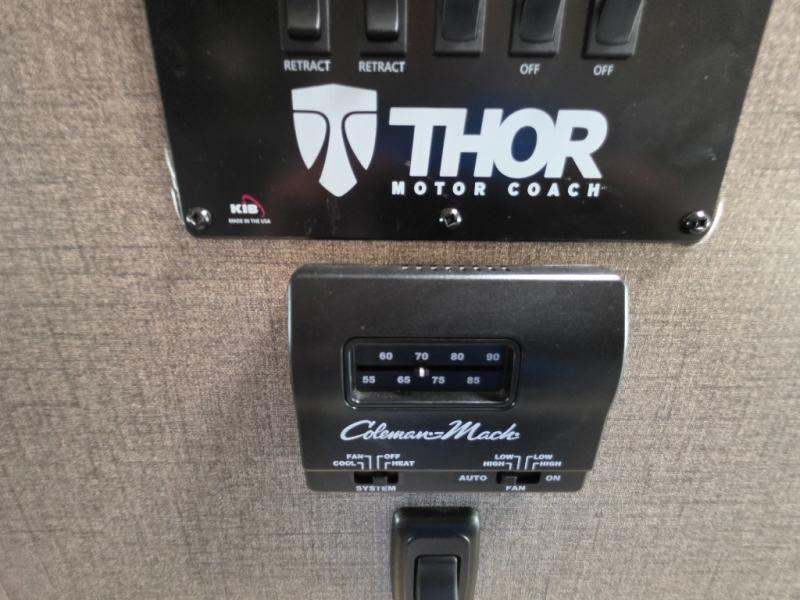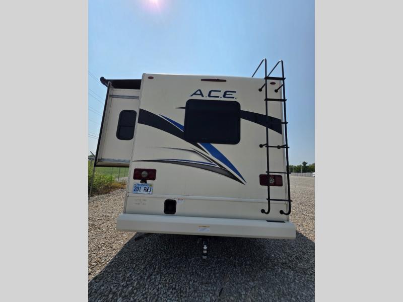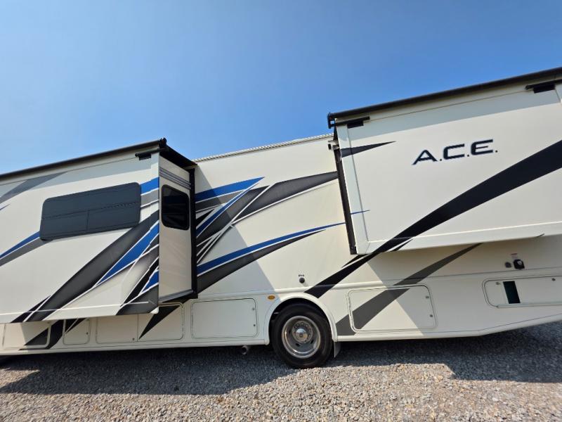 Finally, a family-friendly, pet-friendly Class A gas motorhome, the ACE by Thor Motor Coach. Each model includes an Axxera 10" touchscreen dash radio with Bluetooth and Sirius/XM Radio, a back-up monitor, plus reclining/swivel Leatherette captain's chairs for the ultimate driving experience. The A.C.E is constructed with welded tubular steel floor, roof, and sidewalls, a one-piece fiberglass front cap, and automatic leveling jacks with touchpad controls to provide easy set-up. And you don't have to worry about leaving anything behind since these units include rototcast storage compartments for all your gear. Inside, you will enjoy residential vinyl flooring throughout, glass tile backsplash in the kitchen, and a spacious bedroom with a designer headboard to name a few comforts. Set out to new destinations in an A.C.E Class A motorhome by Thor Motor Coach today!