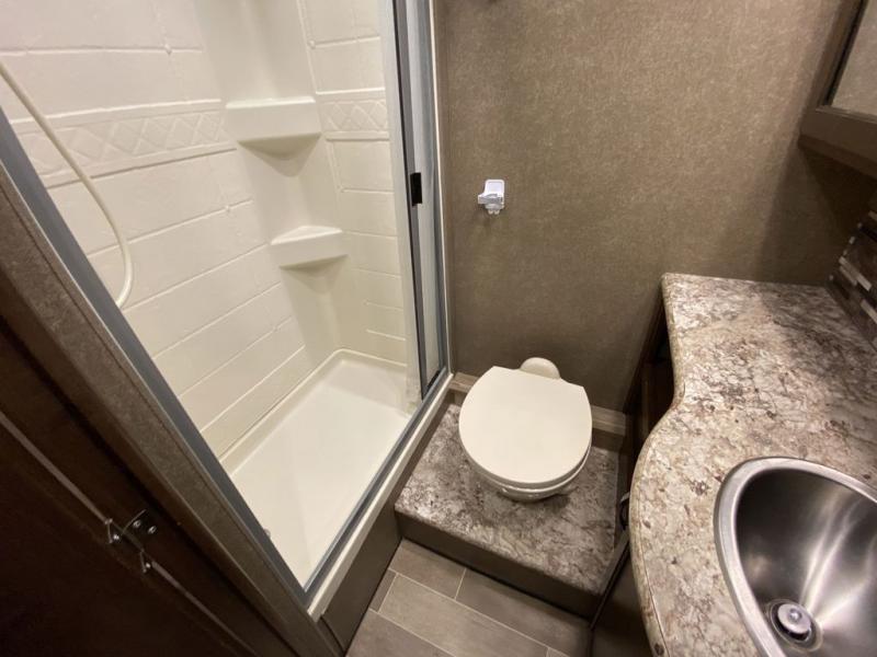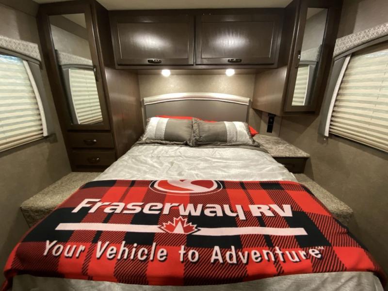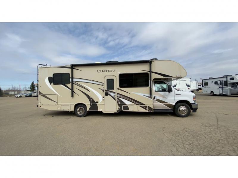 Comfort, convenience, and class is what you'll find in this Chateau Class C gas motorhome! A rear private bedroom is your place to relax at night on the walk-around RV queen bed, and you can also grab a change of clothes from the bedside closets before heading out for an afternoon hike. A large slide in the main living area gives you space to cozy up on the 68" jackknife sofa while you watch a movie on the 39" TV. The cook will love all the kitchen amenities at their fingertips, plus the extra sleeping space on the 54" x 96" bunk over the cab and furniture is perfect when you have overnight guests. If you like, choose a few options such as theater seating, a bedroom 32" TV, and/or an exterior 32" TV.