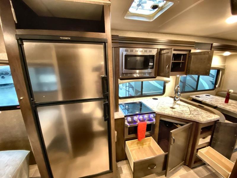 Comfort, convenience, and class is what you'll find in this Chateau Class C gas motorhome! A rear private bedroom is your place to relax at night on the walk-around RV queen bed, and you can also grab a change of clothes from the bedside closets before heading out for an afternoon hike. A large slide in the main living area gives you space to cozy up on the 68" jackknife sofa while you watch a movie on the 39" TV. The cook will love all the kitchen amenities at their fingertips, plus the extra sleeping space on the 54" x 96" bunk over the cab and furniture is perfect when you have overnight guests. If you like, choose a few options such as theater seating, a bedroom 32" TV, and/or an exterior 32" TV.
