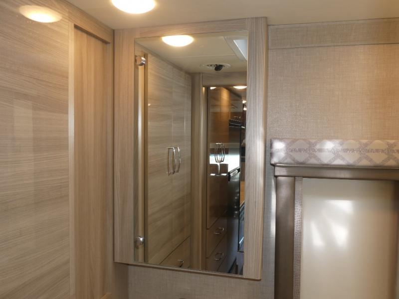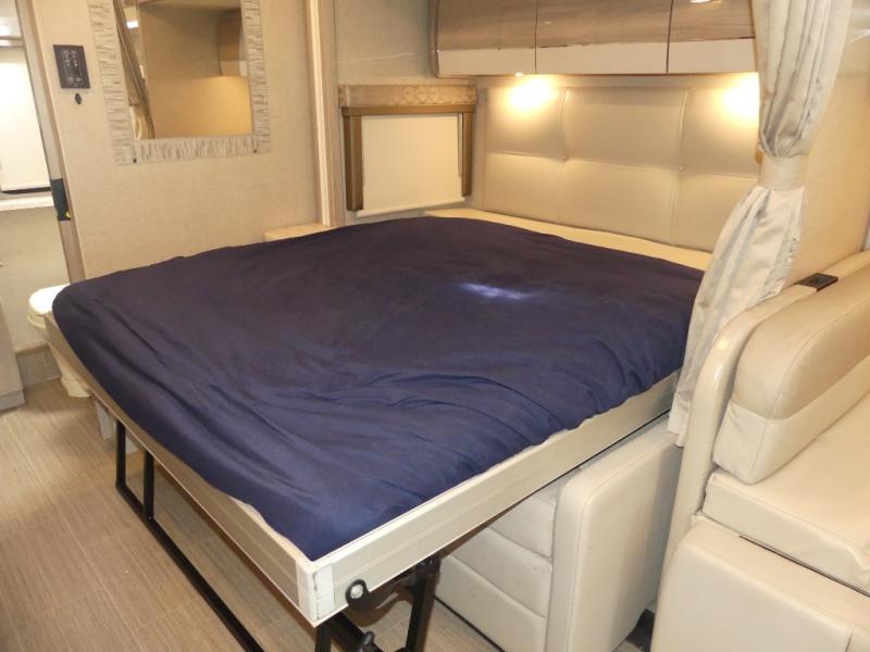 Pack your bags, grab a map, and start planning your next adventure in this Delano Sprinter Class C diesel motorhome that features a large slide out for more interior space. You will love the drive just as much as the destination with heated electric driver and passenger seats, and since they both swivel, you'll have more seating choices when parked. The kids will love climbing into the 36" x 75" bunk over the cab, and the built-in skylight will provide more natural lighting. After you've spent your day outdoors, enjoy dinner at the 70" Dream Dinette and watch a show on the 32" LED TV. This model features plenty of storage, including a large wardrobe/pantry.