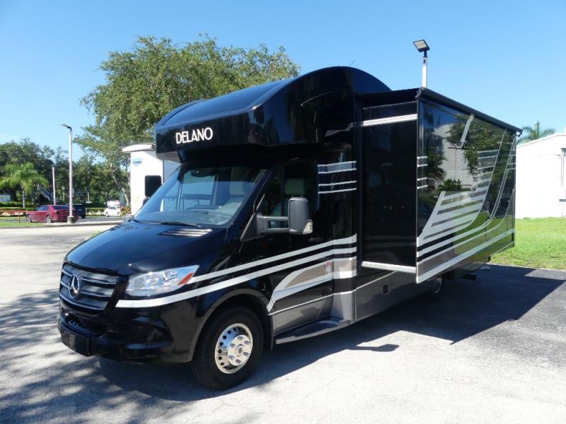Each Delano Sprinter Class C diesel motorhome by Thor Motor Coach is built on a Mercedes-Benz Sprinter chassis with a welded tubular aluminum roof and sidewall cage construction, a vacu-bond laminated roof, walls and floors with foam insulation, an electric stabilizing system, and a fiberglass front and upper rear cap. Other standard features include the Rapid Camp+ Multiplex Wiring Control System, the Winegard ConnecT 2.0 to stay connected, and the tankless water heater for hot showers whenever you like. Choose a Delano Sprinter to experience modern style and luxury wherever you travel!