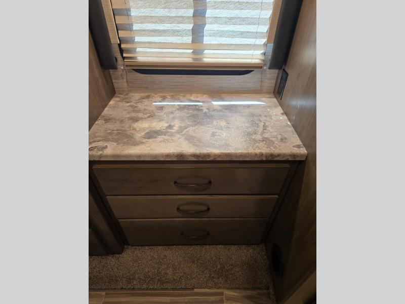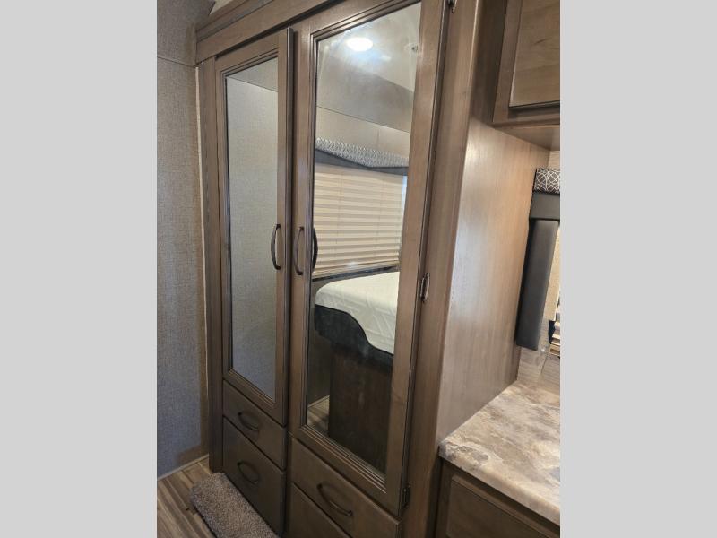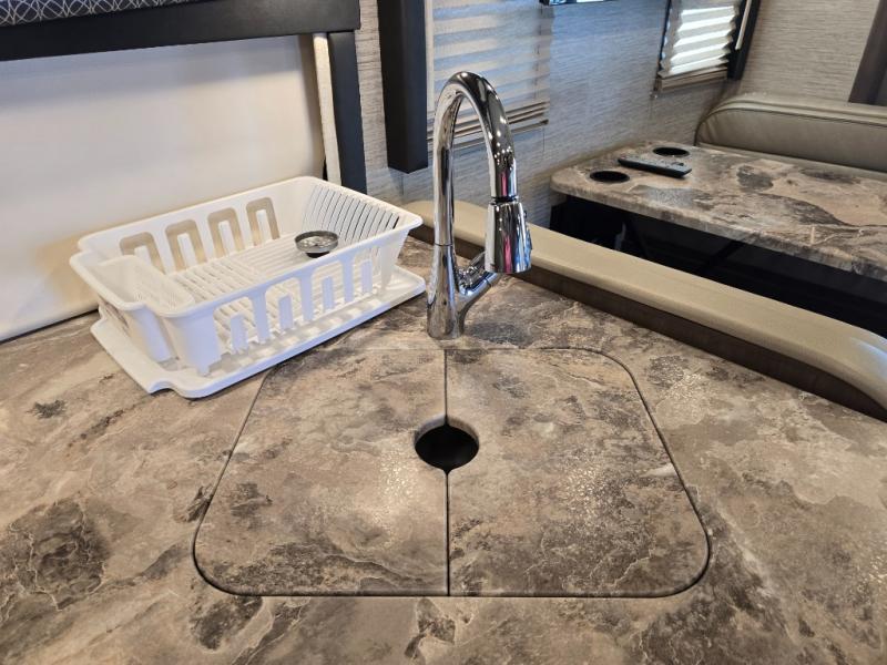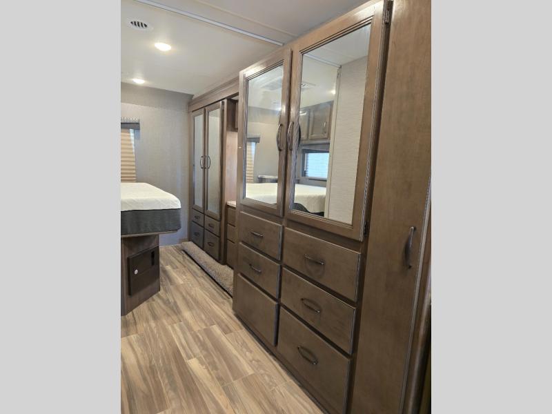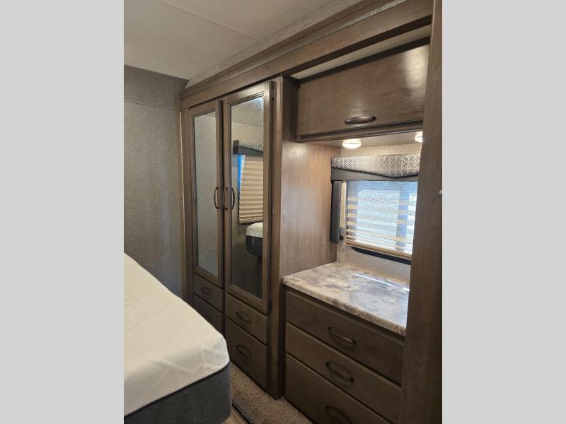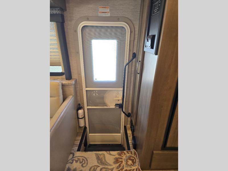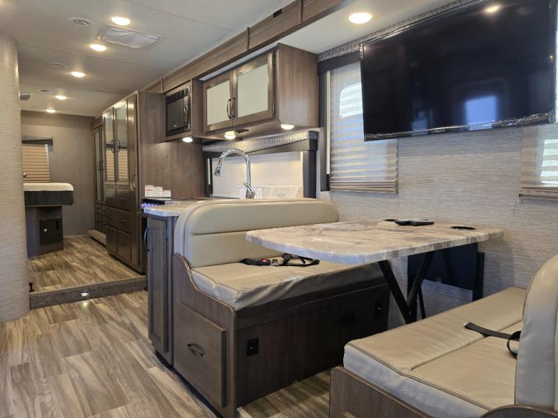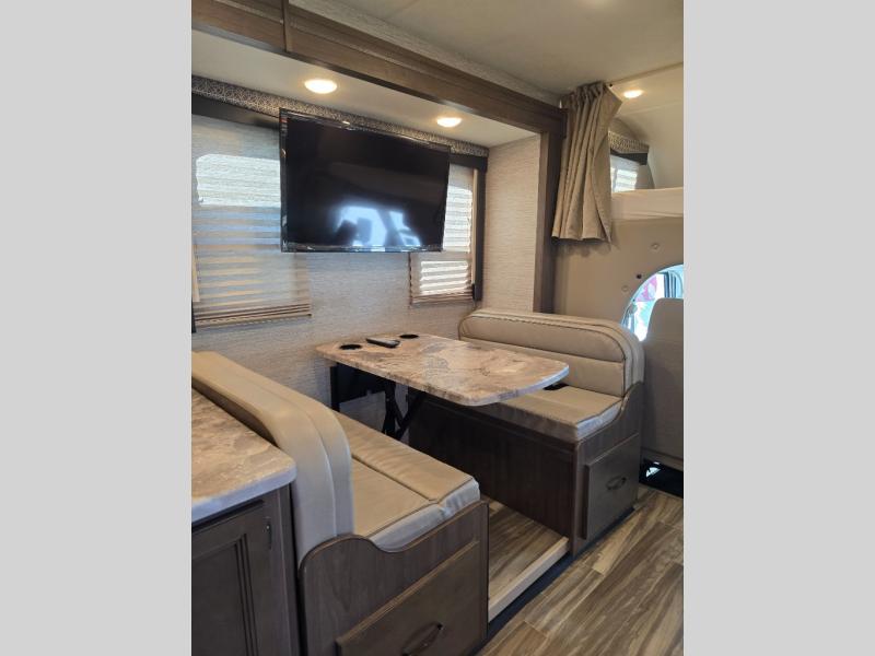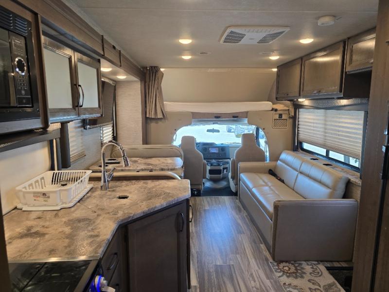 Each one of these Four Winds Class C gas motorhomes are equipped with everything you will want or need! Your adventures will be powered by a 7.3L Ford V8 engine with a 8,000 lb. hitch, and the welded tubular aluminum roof and sidewall cage provide a strong, durable motorhome. The touchscreen dash radio with a back-up monitor will make getting in and out of the campground a breeze, plus each model is SiriusXM ready so you can listen to your favorite tunes if you choose. These models are tech-filled with a Winegard ConnecT 2.0 that works as your WiFi router, 4G hotspot, and TV antenna. You will not only have a comfortable and convenient interior living space, but also a dreamy outdoor living space with the power patio awning with LED lighting, and all your gear can go in the lighted rotocast storage compartments!