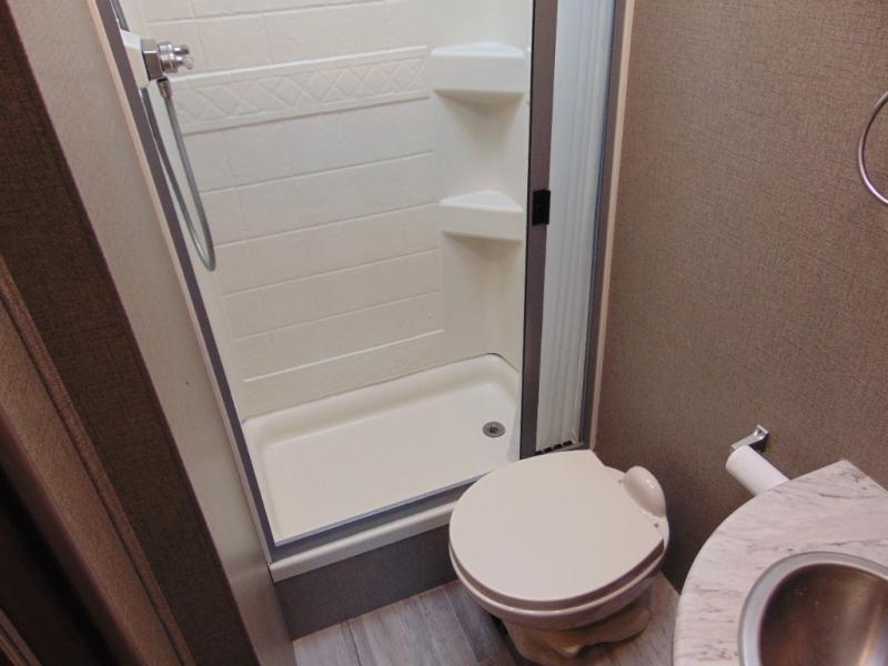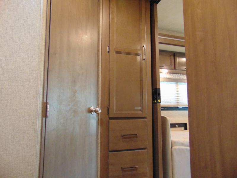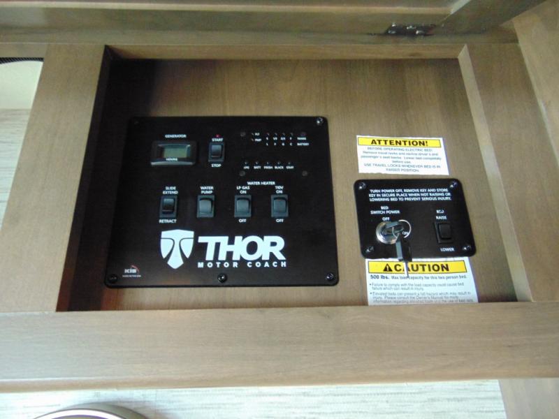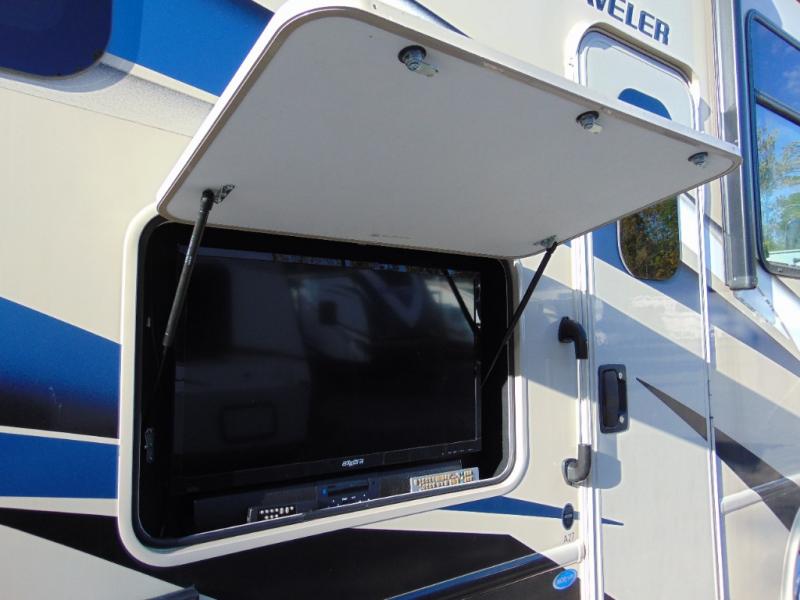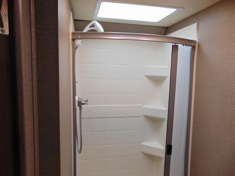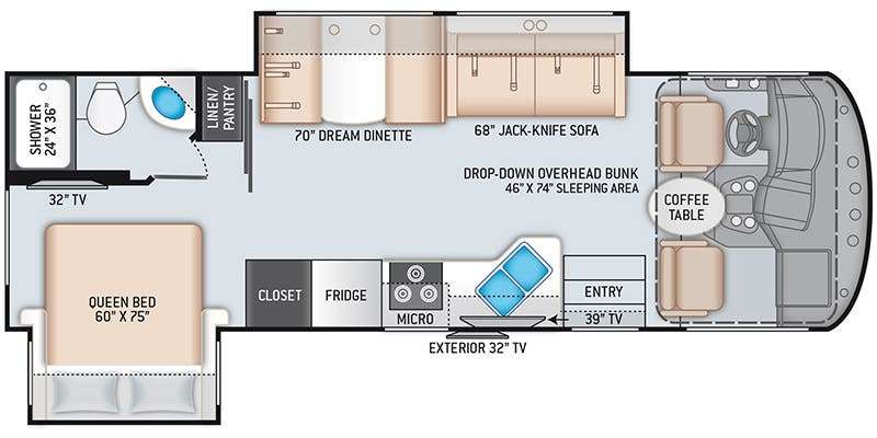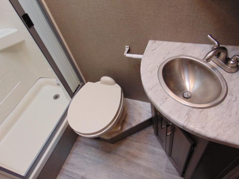 Searching for the perfect Class A motorhome to take across the country? Just imagine drinking your morning cup of coffee in the captain's chairs while placing your book on the stow-away coffee table. You might even choose to complete some work at the dash workstation with 110V and 12V outlets while your spouse takes a walk around the RV park. When it's time to make breakfast, you will find full kitchen amenities, plus you can watch the Large LED TV while dining or relaxing after cooking. This model includes plenty of storage space, including a large slideout that includes a sleeper sofa and sleeper dinette with lots of storage. You will also find your own queen-size bed slideout and a full bathroom, plus extra sleeping space for overnight guests.