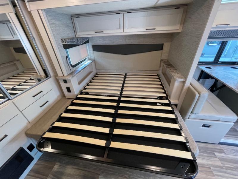 Envision this Gemini Class B+ AWD gas motorhome as your traveling companion for every road trip you take! With its convection microwave, gas cooktop, refrigerator, and large stainless steel sink, you will have plenty of tools to create delicious meals during every getaway. The 24" x 32" shower in the full bathroom allows you to get cleaned up after a day of playing outside. You will also appreciate having two TVs to keep you and your guests entertained throughout the entire journey!