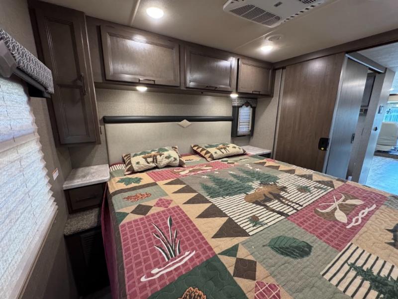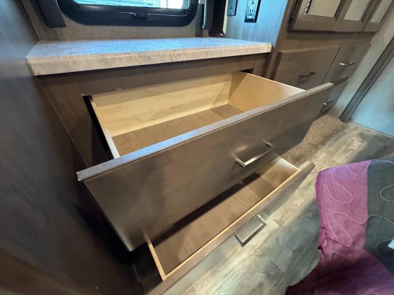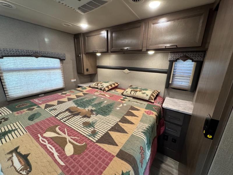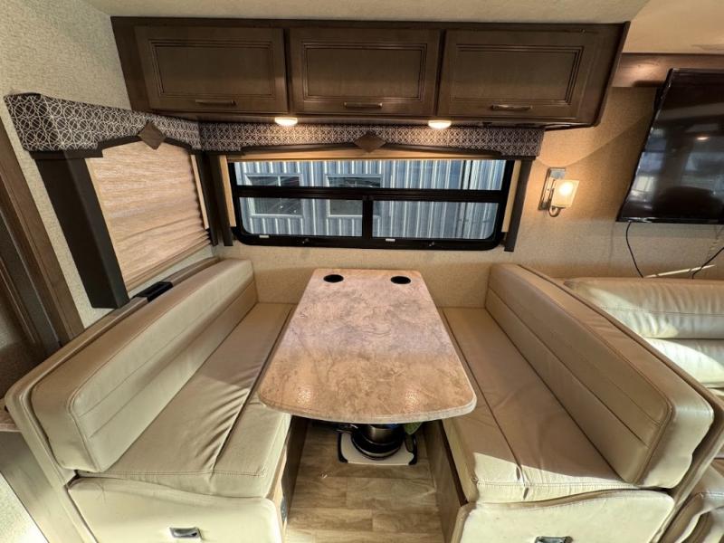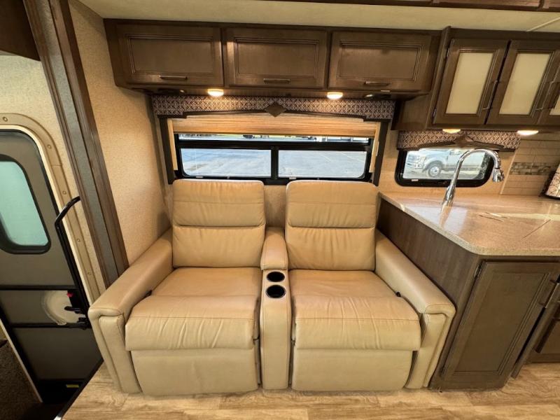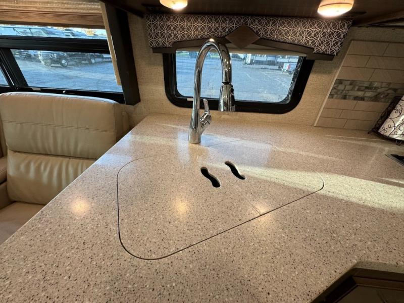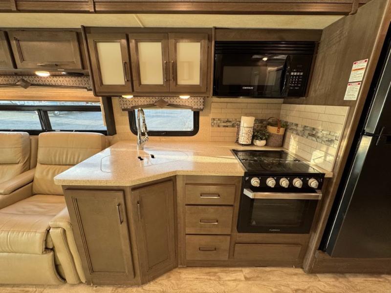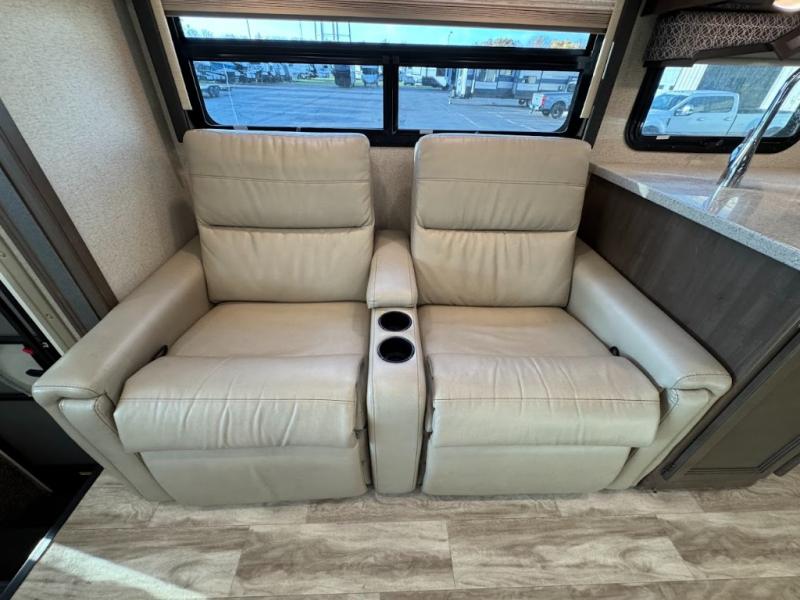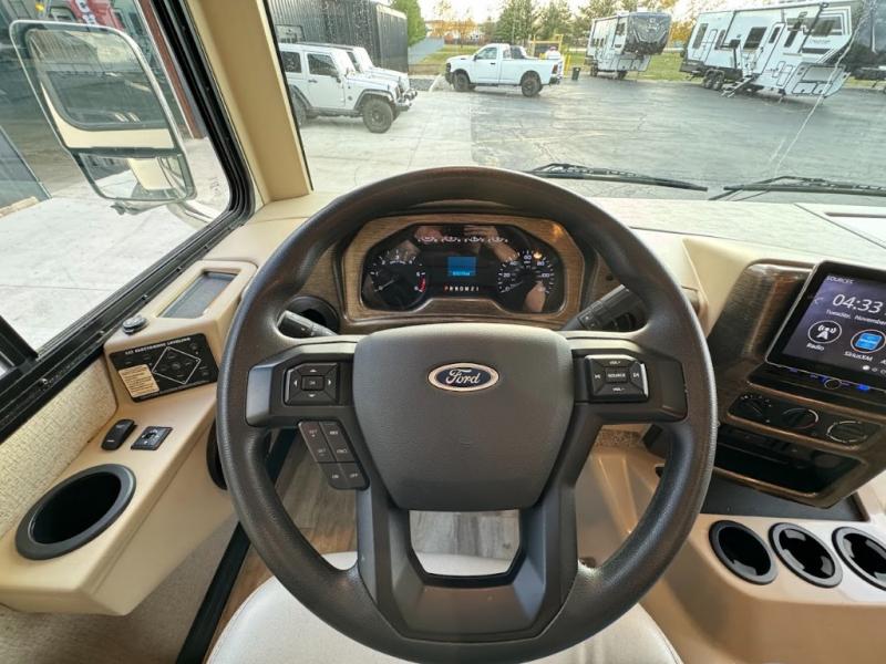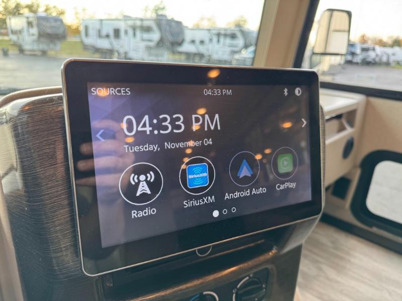 With any Thor Motor Coach Hurricane Class A gas motorhome, there is a welded tubular steel floor with a welded tubular aluminum roof and sidewall cage construction. Some exterior features include the one-piece fiberglass front and rear caps, the automatic leveling jacks with touchpad controls, and the Pet-Link multi-purpose tie-down allowing you to keep your family pet safely near you. More features you are sure to enjoy while on your adventures are the 10-inch touchscreen dash radio with Bluetooth and is SiriusXM ready, the heated/remote exterior mirrors with integrated side view cameras, the dash workstation with outlets, the easy-to-care-for residential vinyl flooring, the USB charging ports in the bedroom and living room, and so much more! Start your Hurricane adventure today!